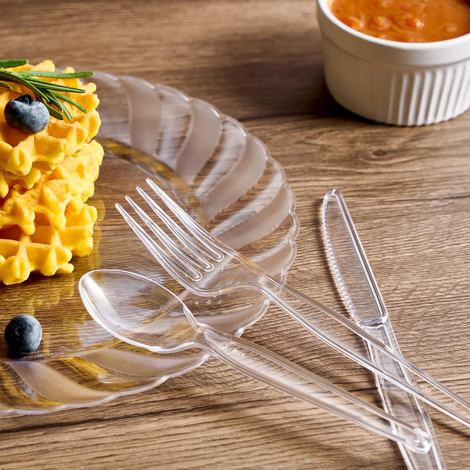 - STRONG & DURABLE: 7.1 inches long, disposable plastic fork weighs 5.1 grams, 300-pack disposable plastic clear forks and heavy-duty plastic cutlery. Suitable for hot and cold solids. Zero bending and breaking, giving you maximum comfort.