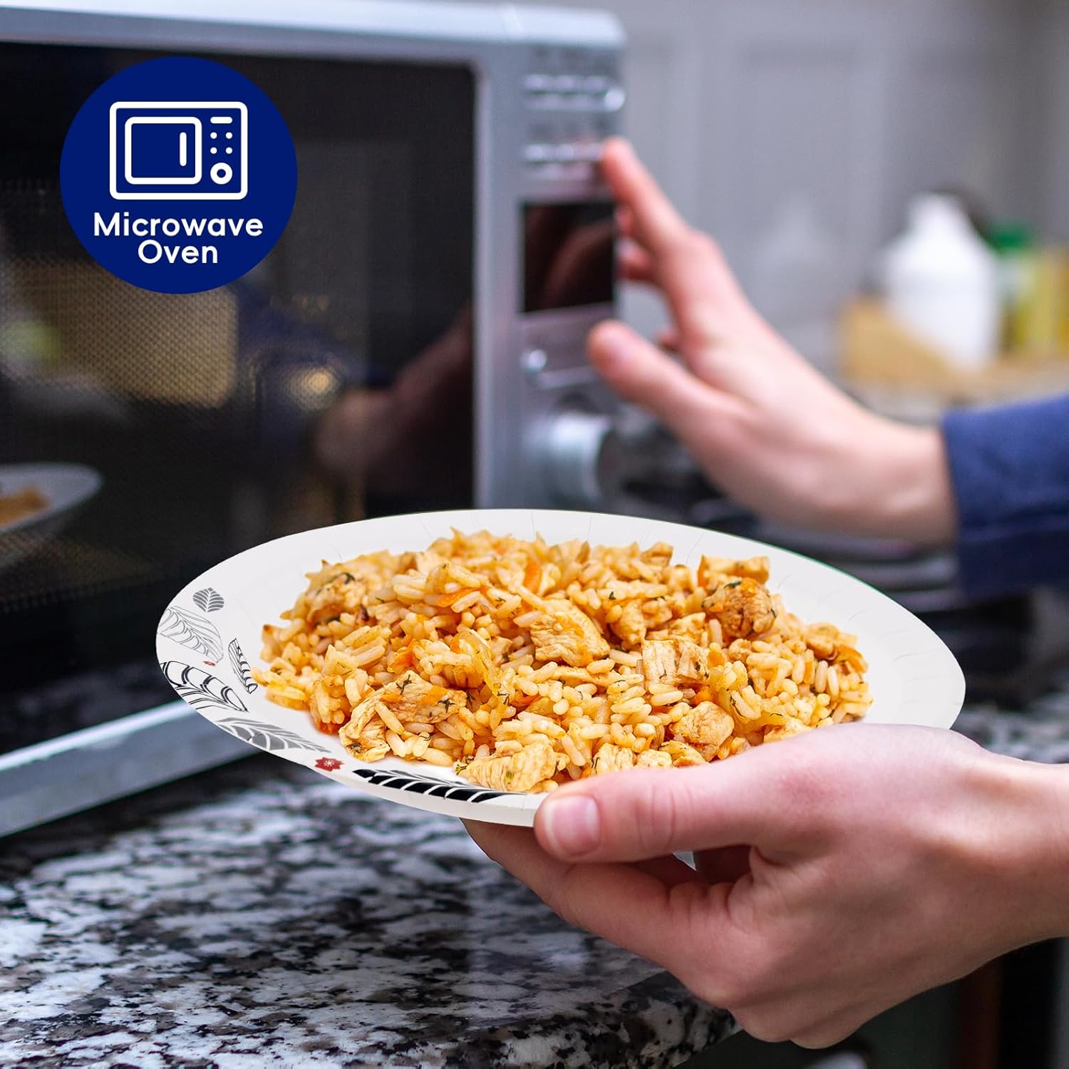 - 【Microwaveable & Premium Quality】Heavy duty Paper plates are microwaveable and freezer safe, they can be used for hot and cold food. Cut-resistant and soak-proof, making it perfect for your food without worrying about spills and messes. Notice: Do not heat dry foods such as bread