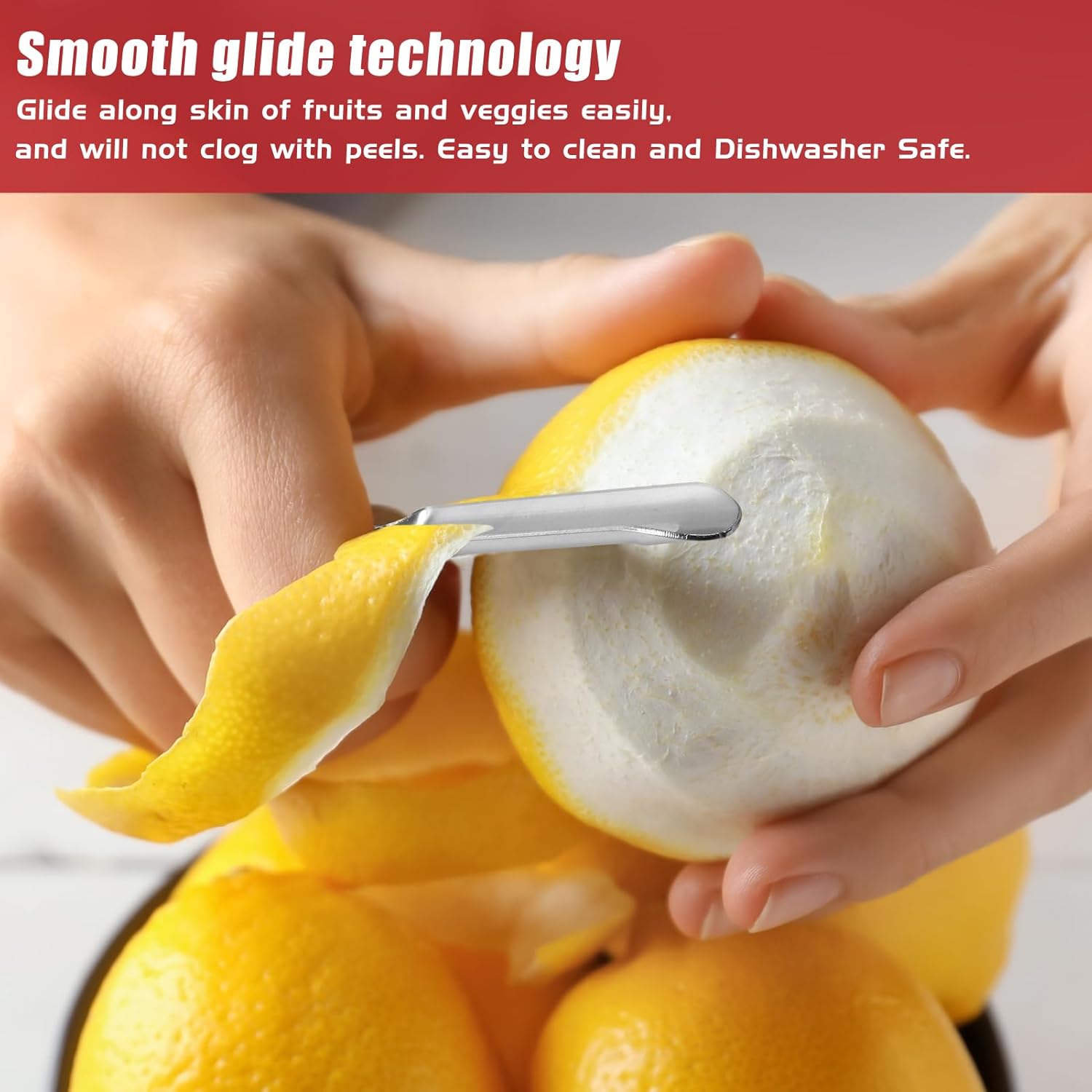 - 【Smooth Glide Design】This potato peeler blade body has a unique design, so that the skins will not be blocked, and can smoothly peel off the skin of various fruits and vegetables. Clean up the peeler quickly under running water and dishwasher safe.