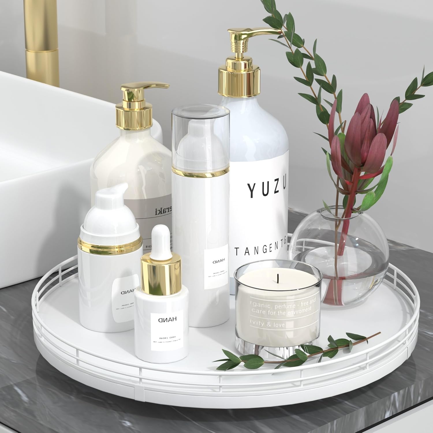 - ๐ ๐๐น๐๐ถ-๐ฃ๐๐ฟ๐ฝ๐ผ๐๐ฒ ๐จ๐๐ฎ๐ด๐ฒ: Perfect for a wide range of occasions and spaces. Whether used as a centerpiece table decorations, a vanity tray in your bathroom, or condiment organizer on your kitchen, this versatile round tray adapts to your needs in any room