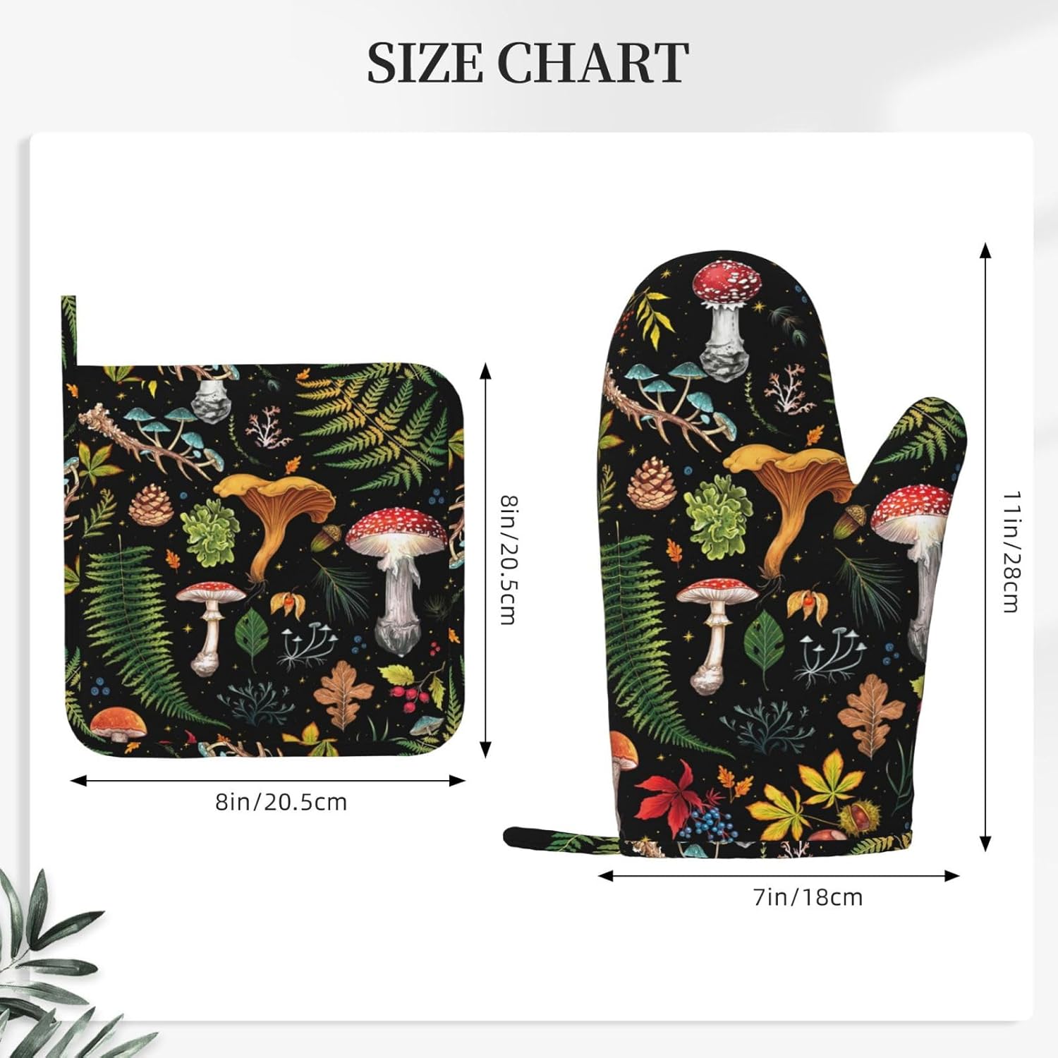 Mushroom Oven Mitts and Pot Holders Sets Silicone Mushrooms Kitchen Mitts Potholders Heat Resistant 4Pcs Oven Gloves Hot Pads for Kitchen Baking Cooking BBQ Grilling