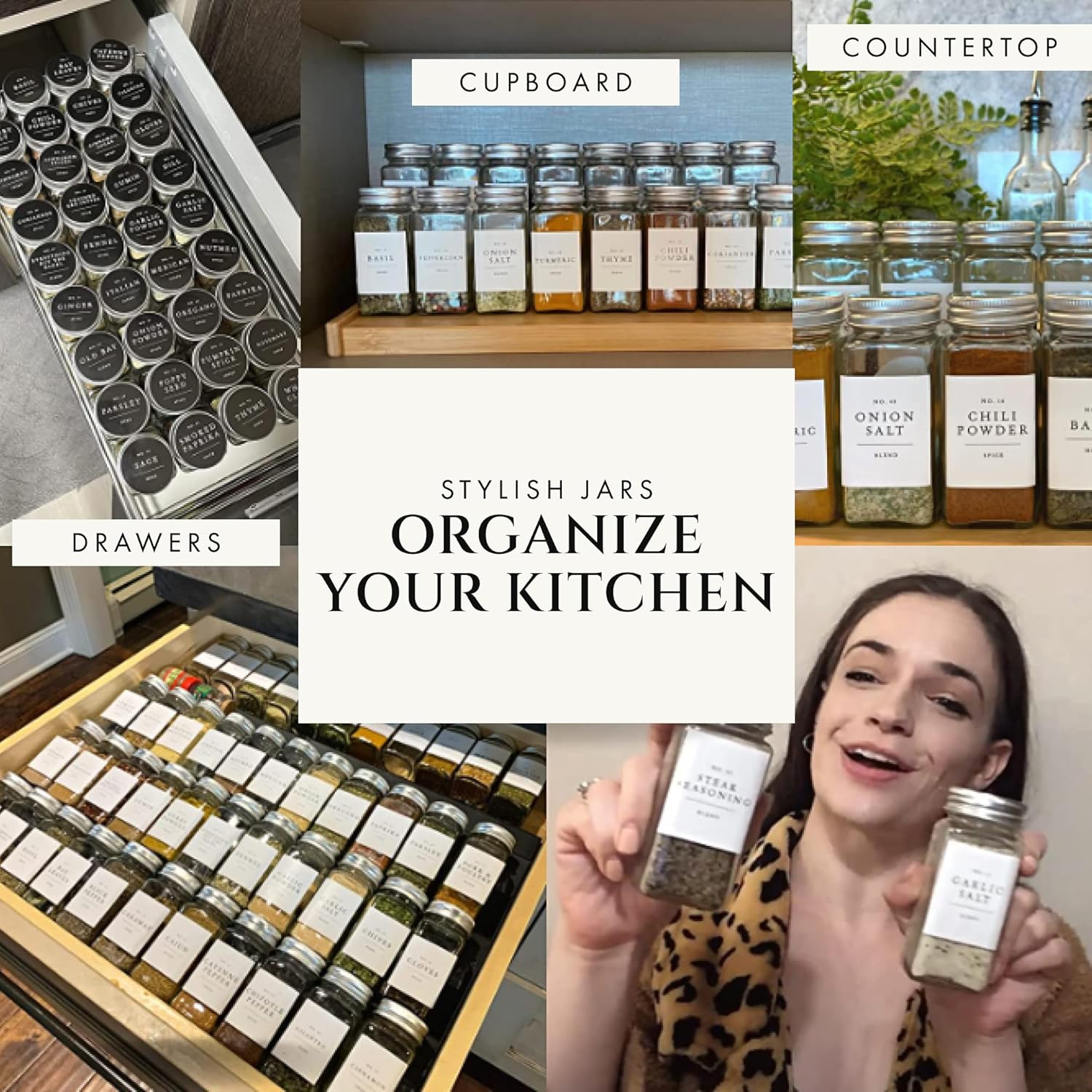 - MAKE YOUR KITCHEN INSTAGRAM-WORTHY: Achieve the perfect blend of function and style with 24 elegant 4oz spice containers with labels, 240 waterproof minimalist labeled spice jars, and a collapsible silicone funnel. This set helps you create a tidy, inspiring pantry that enhances your cooking space