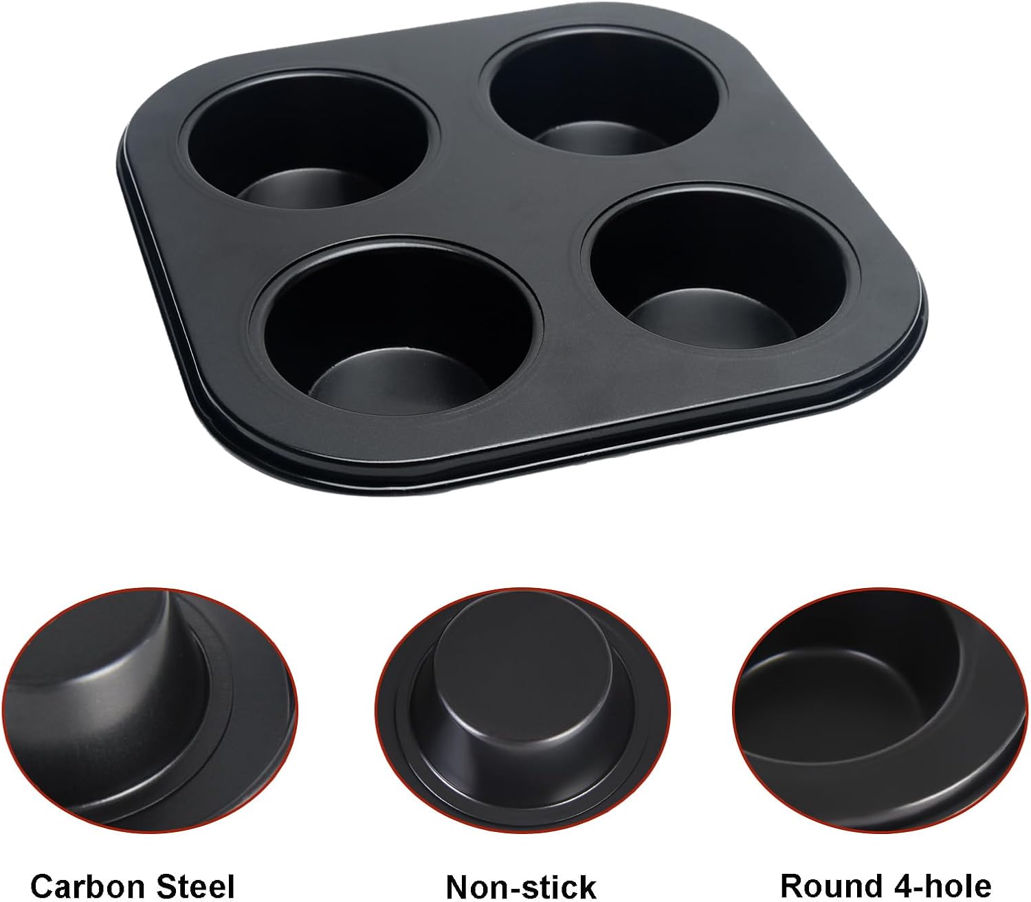 4 Cup Muffin Pan, Bakeware Non-stick Cupcake Baking Pan Mini Pie Pans, Air Fryer Small Oven Cupcake Baking Pan Non Stick No Toxic Bakeware, Heavy Duty Carbon Steel Muffin Tray for Oven Baking (2PCS)