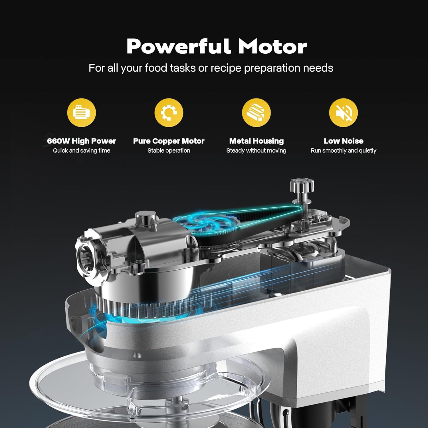 - POWERFUL PERFORMANCE: The VIVOHOME stand mixer is equipped with a 660 W pure copper motor that kneads and mixes faster and more thoroughly than human hands, easily handling all your needs; Its 360° planetary mixing and stirring mechanism ensures the attachments come into contact more evenly with ingredients in the bowl