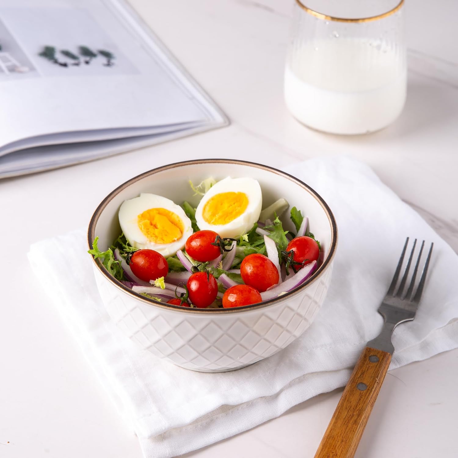 GBHOME Stoneware Cereal Bowls Set of 4, 24 oz Ceramic Soup Bowls with Texture Patterns for Soup,Oatmeal, Snacks, Perfect Bowls for Wedding, House-warming Gift-Off White