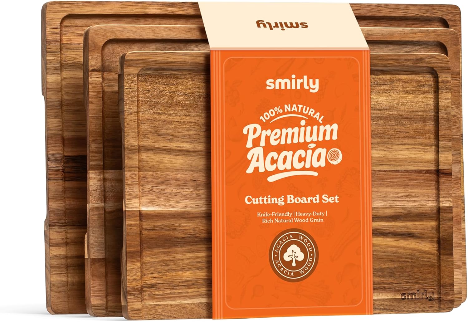 SMIRLY Wood Cutting Board, Bamboo Cutting Board Set, Chopping Board and Wooden Cutting Boards for Kitchen, Small Wood Cutting Board and butcher block (Acacia Wood, 3 Pack)