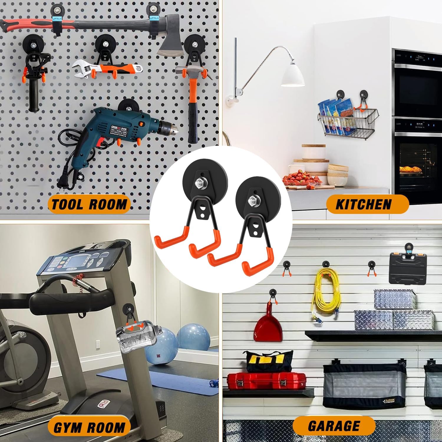 Heavy Duty Magnetic Garage Hook,4 Pack Strong Large Magnet Hooks for Power Drill,Garden Tools,Hose,Pegboard,Garage, Workshop,Magnetic Storage Hooks for Indoor Outdoor Hanging(Orange)