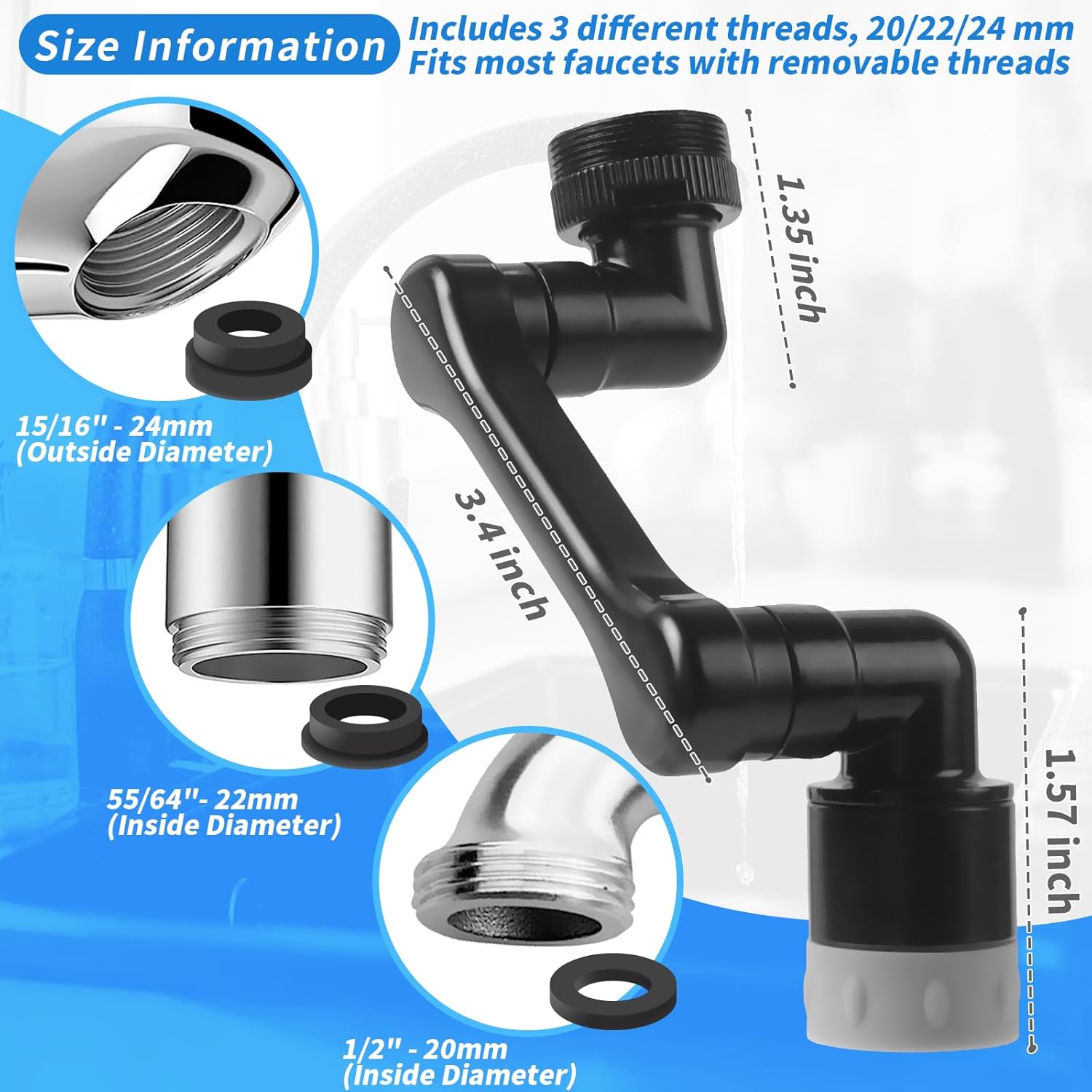 - 【1080 Rotating Faucet Extender】 The Longing Home Faucet Extender has 3 joints that rotate 360 degrees, featuring the innovative 1080 swivel faucet aerator for enhanced flexibility. Adjustable spray angle when washing face/eyes, brushing teeth, washing hair, washing dishes, cleaning hard-to-reach sink corners, making cleaning an easy task. High quality filtration components bring cleaner water, bringing you and your family and kids a healthier life.