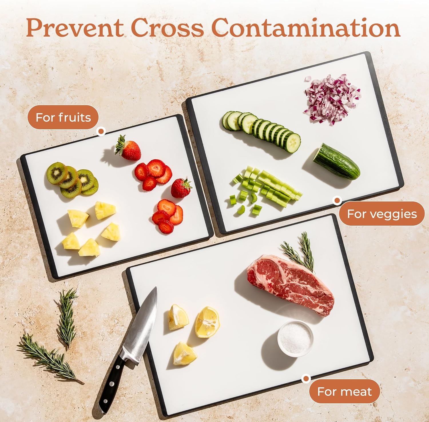 - Confident, Heavy-Duty: Tackle any prep task with Smirly's plastic cutting boards! Made from premium, non-porous, food-grade polypropylene, these chopping boards resist odors and stubborn stains. Experience lasting strength and safety in one indispensable kitchen essential