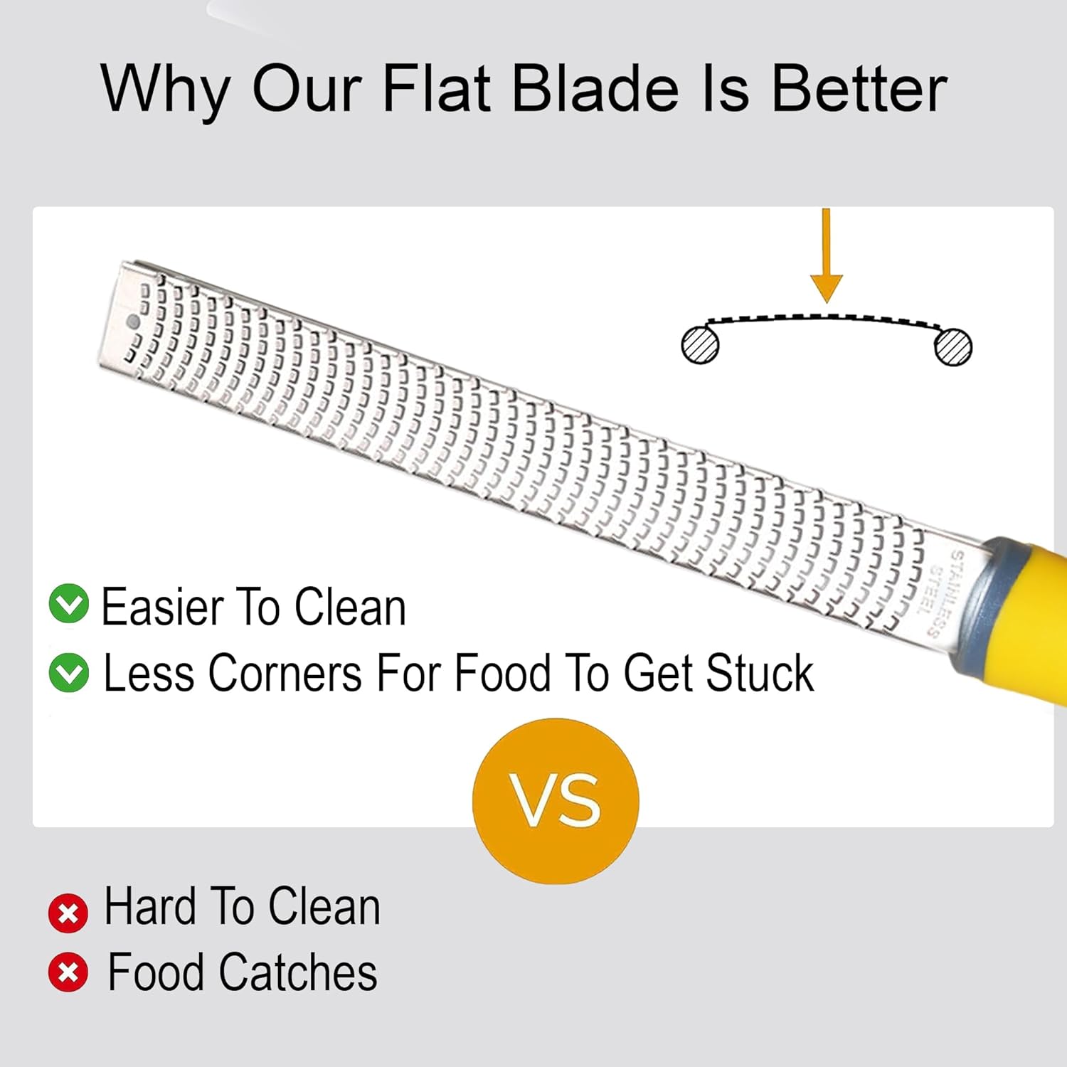 - IT DOES WHAT YOU WANT 👌 - Our zester grater is delicate enough to perfectly zest your lemons yet strong enough to plow through a block of aged parmesan cheese. Trust us - we spent two years fixating on the angle of micro teeth.
