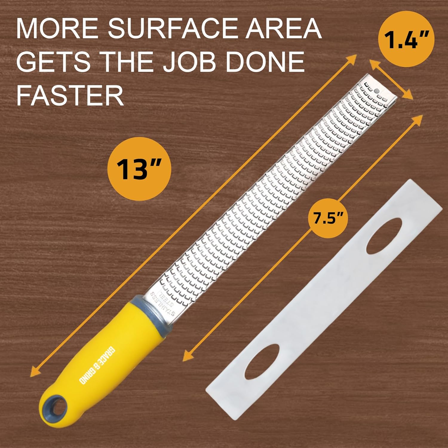 - IT IS BIG 💪 – This baby is 13 inches tall - more surface area means much faster zesting & grating. It's as tall as a bowling pin yet it fits in our drawer (but we like to hang ours up like a trophy).