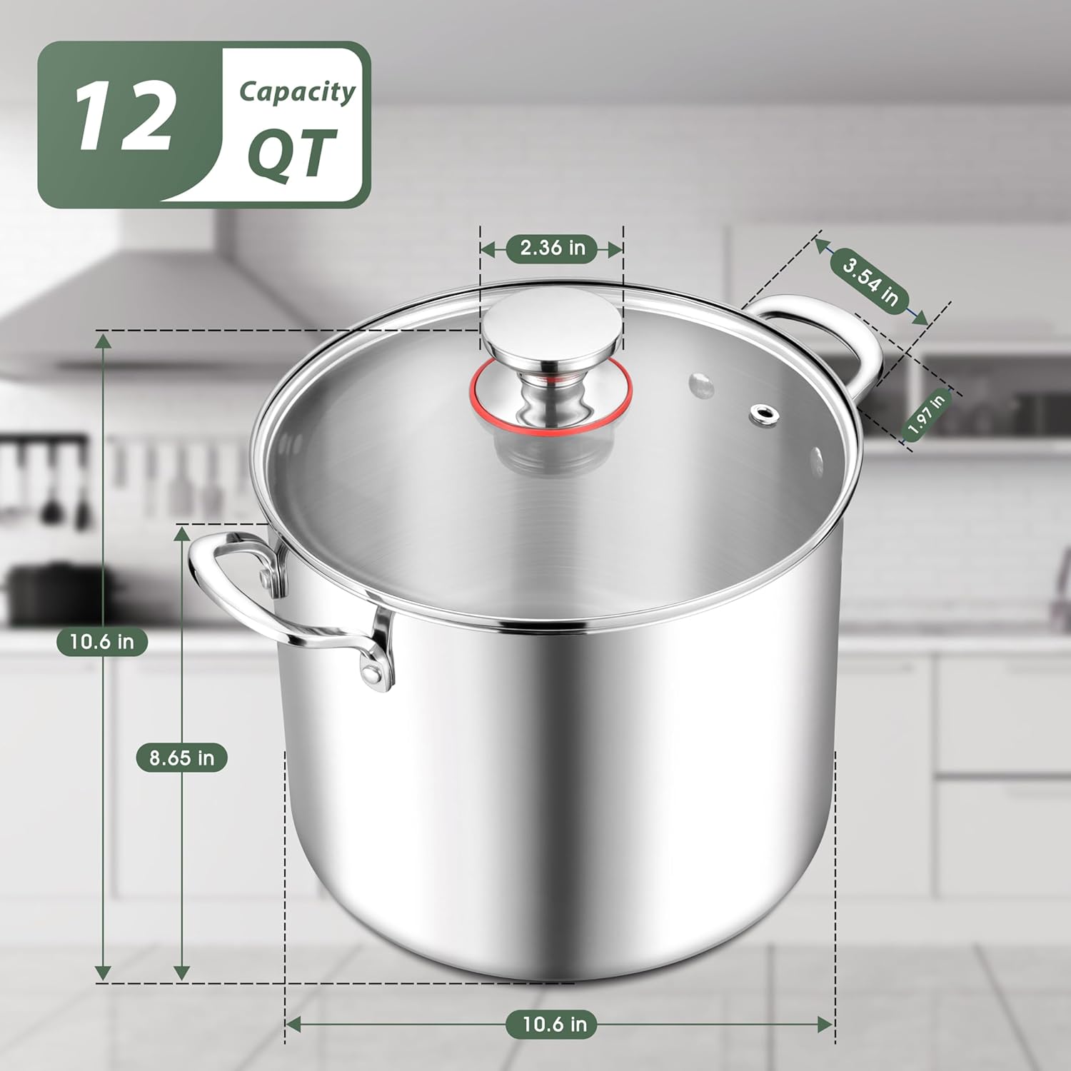 - Premium Quality, constructed from food-grade 18/10 stainless steel, this 12 qt stock pot is heat and corrosion resistant to protect against harmful chemicals and ensure superior durability, its mirror-polished surface is easy cleaning and dishwasher safe