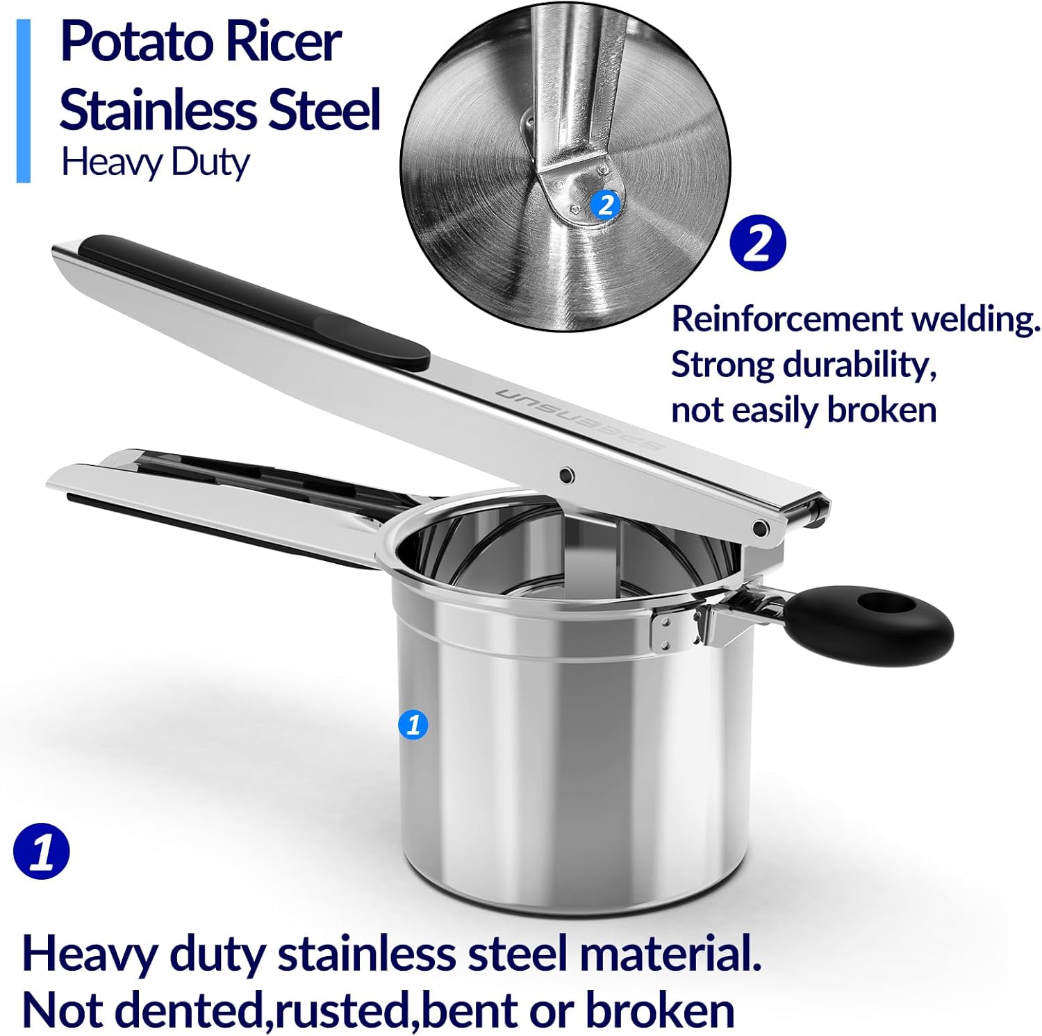 SPEENSUN Potato Ricer, Ricer For Mashed Potatoes, 15 OZ Heavy Duty Stainless Steel Potato Masher Make Fluffy Mashed Potatoes, Fixed Disc Spaetzle Maker Without Messy, With Silicone Handle