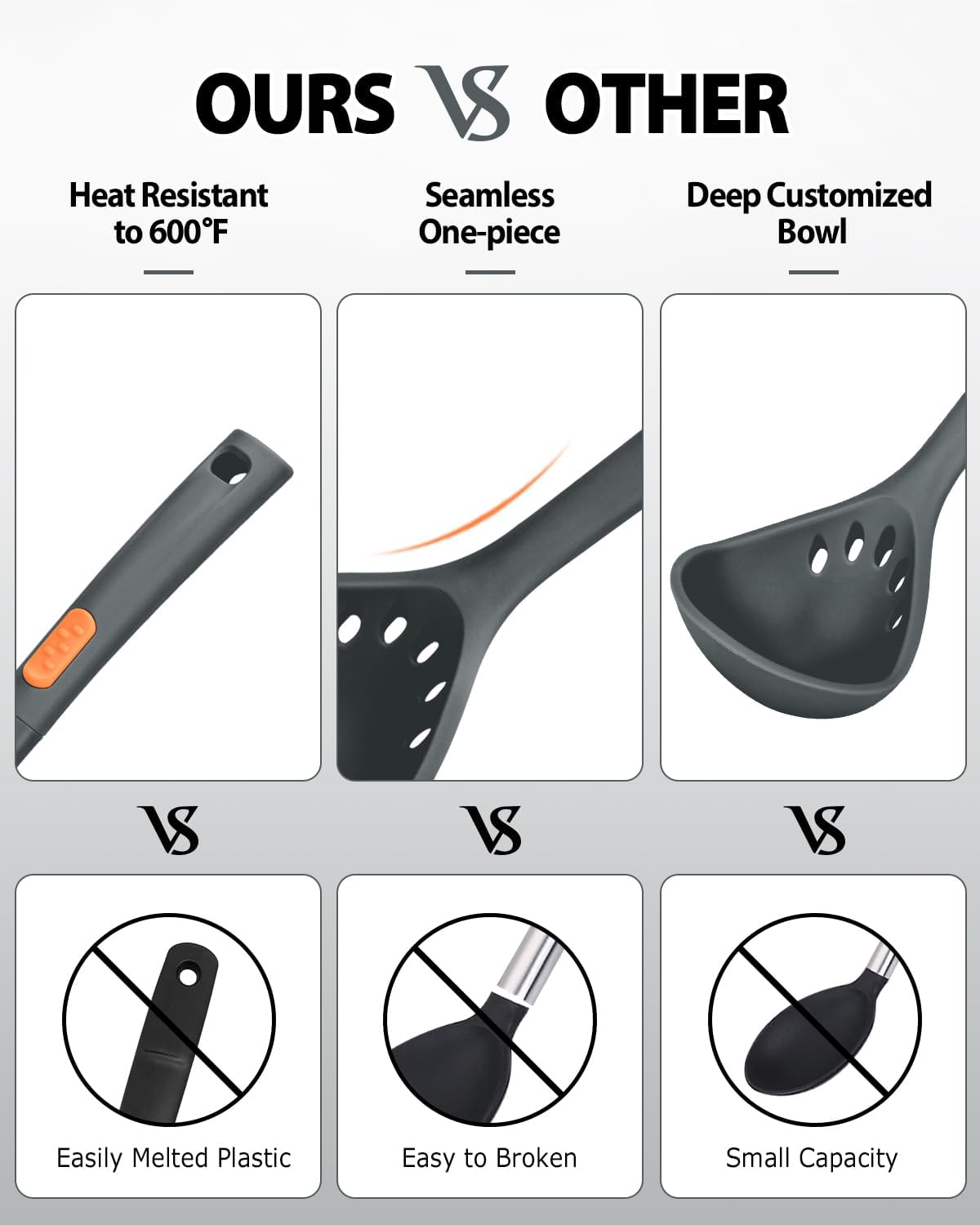 - Heat-Resistant and Non-Stick: Made from high-quality silicone, these utensils are heat-resistant up to 600℉ (315℃), ensuring they won't melt or deform while cooking. The non-stick surface prevents food from sticking, making them easy to clean and maintain.