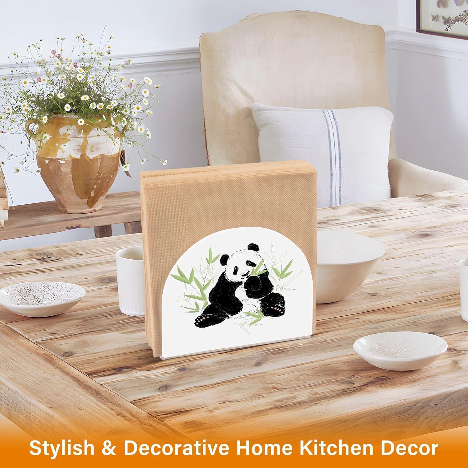 Cute Panda Eating Bamboo Napkin Holder for Table Paper Napkins Holder Acrylic Tissue Dispenser Kitchen Dining Room Bathroom Party Car Decor