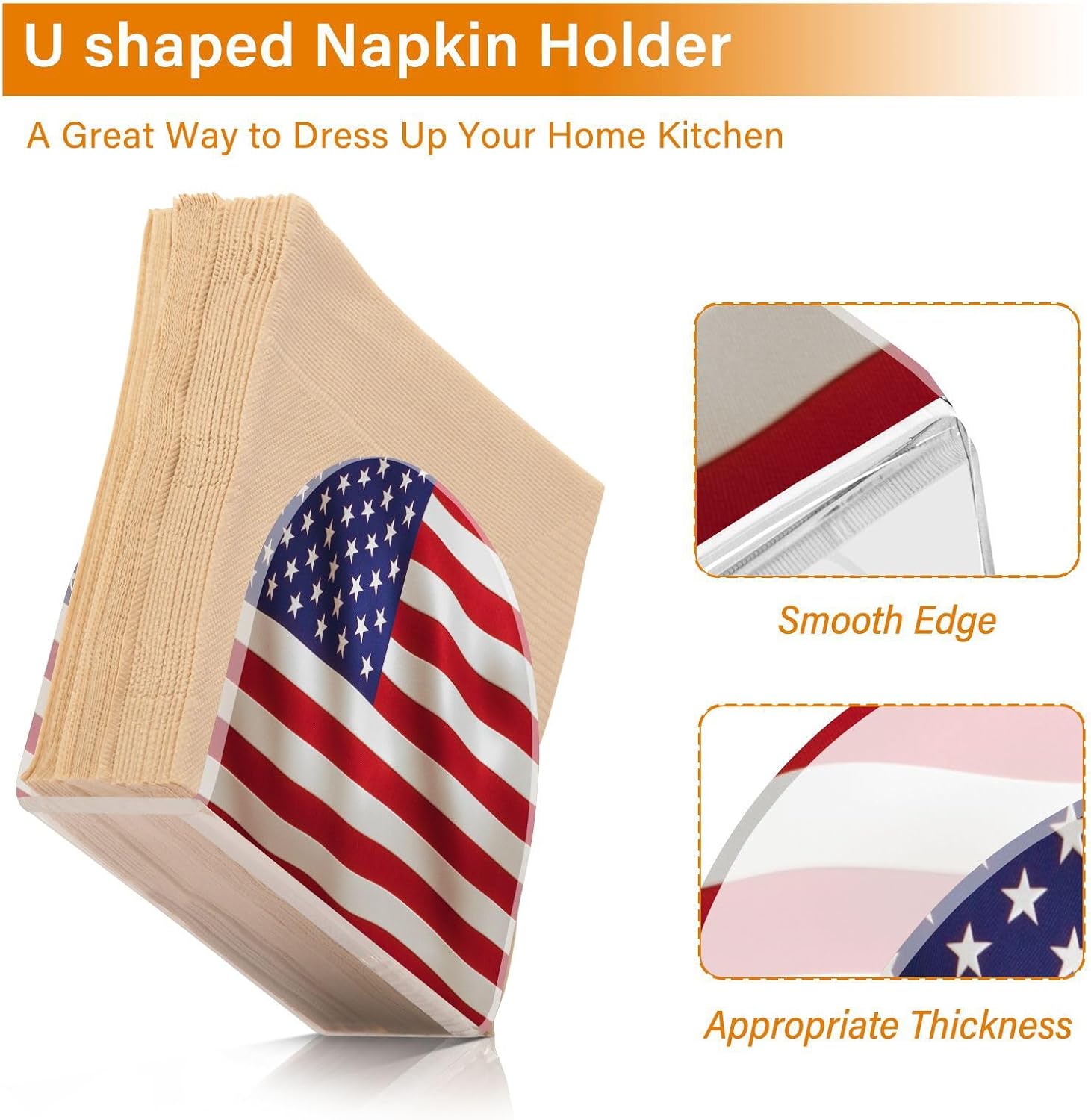 American Flag Napkin Holder for Table Paper Napkins Holder Acrylic Tissue Dispenser Kitchen Dining Room Bathroom Party Car Decor
