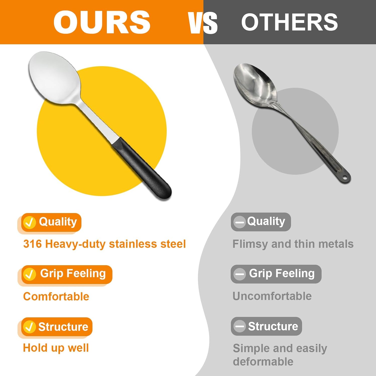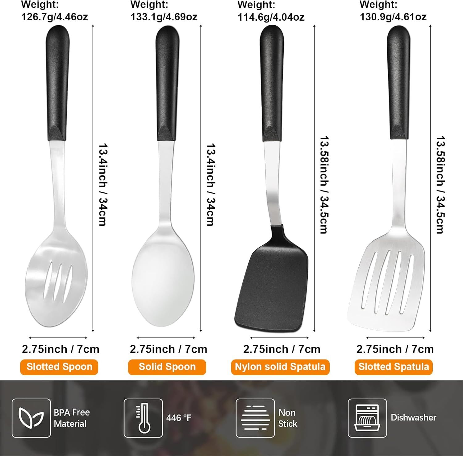 - 【Sturdy and Comfortable Design】Experience comfort and sturdiness with our utensils' ergonomic design, ensuring a comfortable grip even during extended cooking, grilling, or serving sessions.