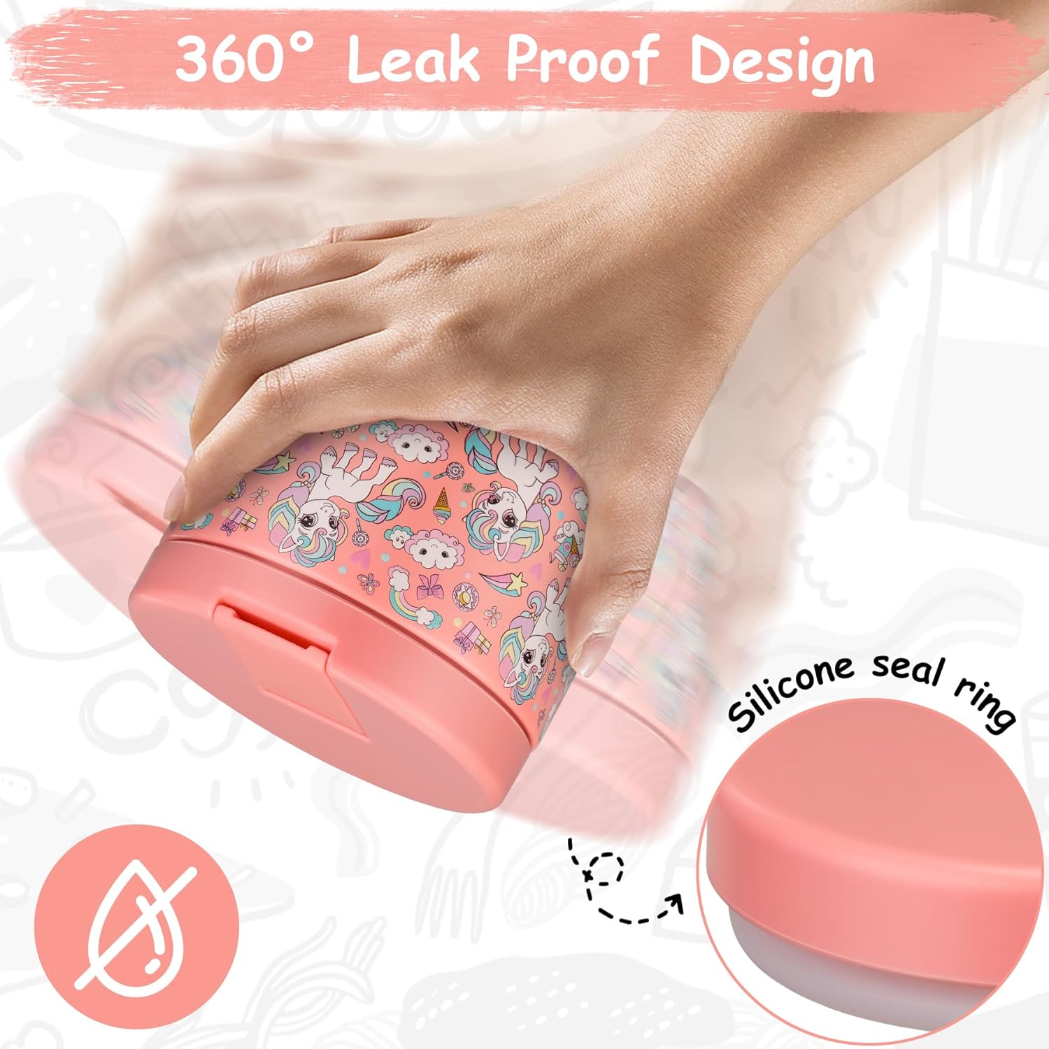 - 100% Leak Proof:Our food thermo comes with a thick silicone gasket. It is full sealed. So you can toss it in your bag or insulation bag without worrying about spills. Wide mouth design are also very easy to clean.