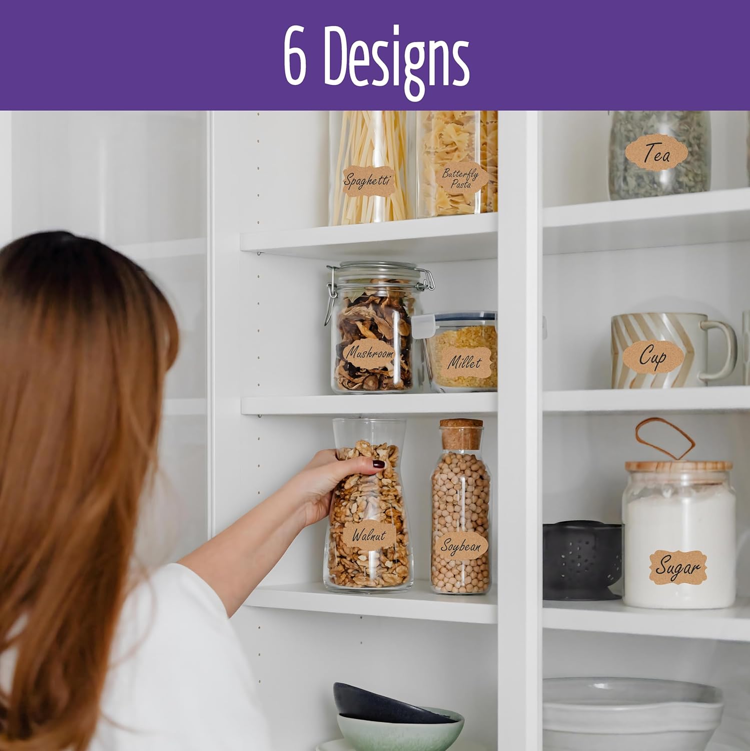 600 PCS Kraft Paper Stickers, 6 Fancy Shapes Labels Self Adhesive Blank Stickers Crafts, Homemade Food Jars, Gift Tags, Name Labels, Envelope Labels, Home Office Business Uses (1.2'' x 2'') (Heba496)