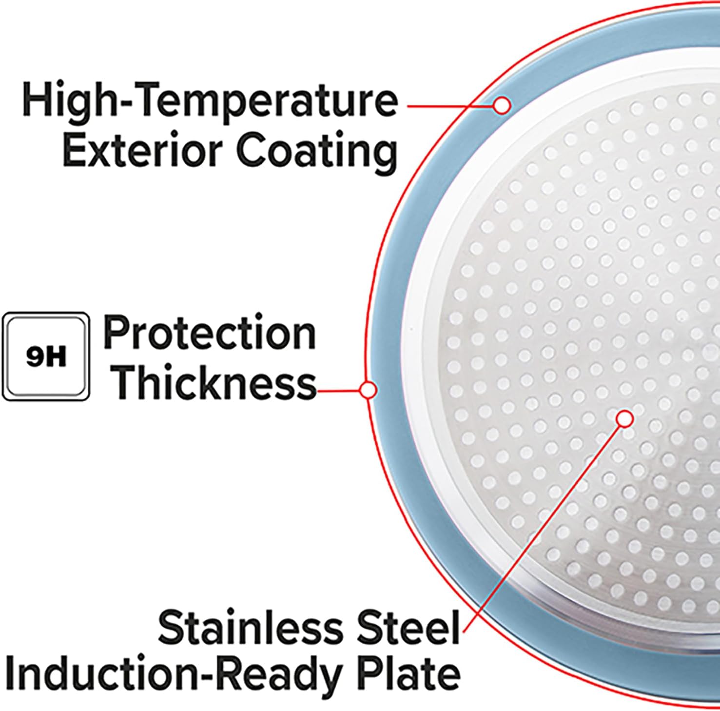 - DURALON BLUE HARDNESS – Hardness is rated at 9H. Since diamond is rated at 10H, It is extremely strong. It has HIGH resistances to abrasion, corrosion, and acid meaning it won’t chip or discolor and will retain its non-stick properties longer.