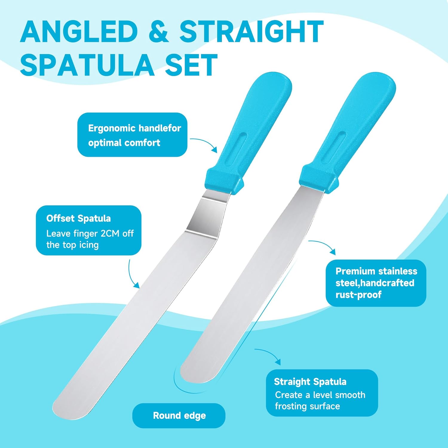 - CAKE DECORATING TOOLS :Our cake set includes scrapers, nozzles, a syringe & cake cutter, flower nails, flower lifter, straight brush, disposable bags & many more Must-Have items you'll love learning to perfect & master. Share the frosting flower fun with friends & family