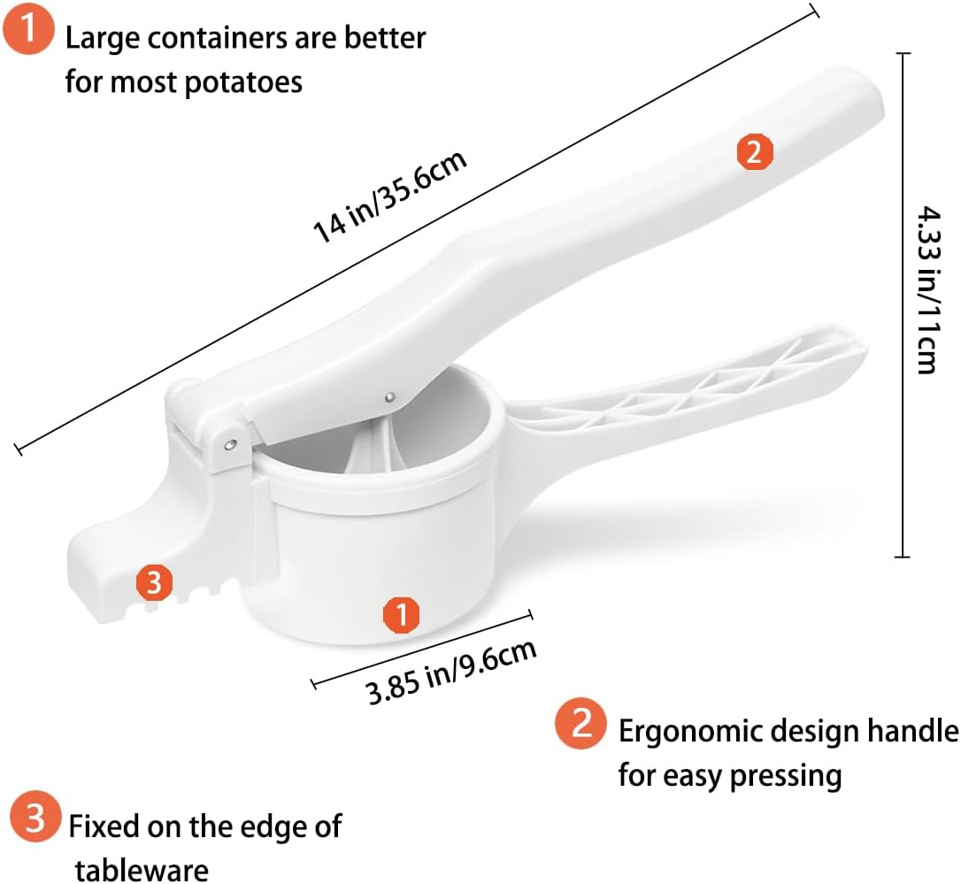 - Large Capacity for Quicker Ricing: Large capacity basket to hold more food at a time, the end result is delicious mashed potatoes made effortlessly in less time and with less fuss.
