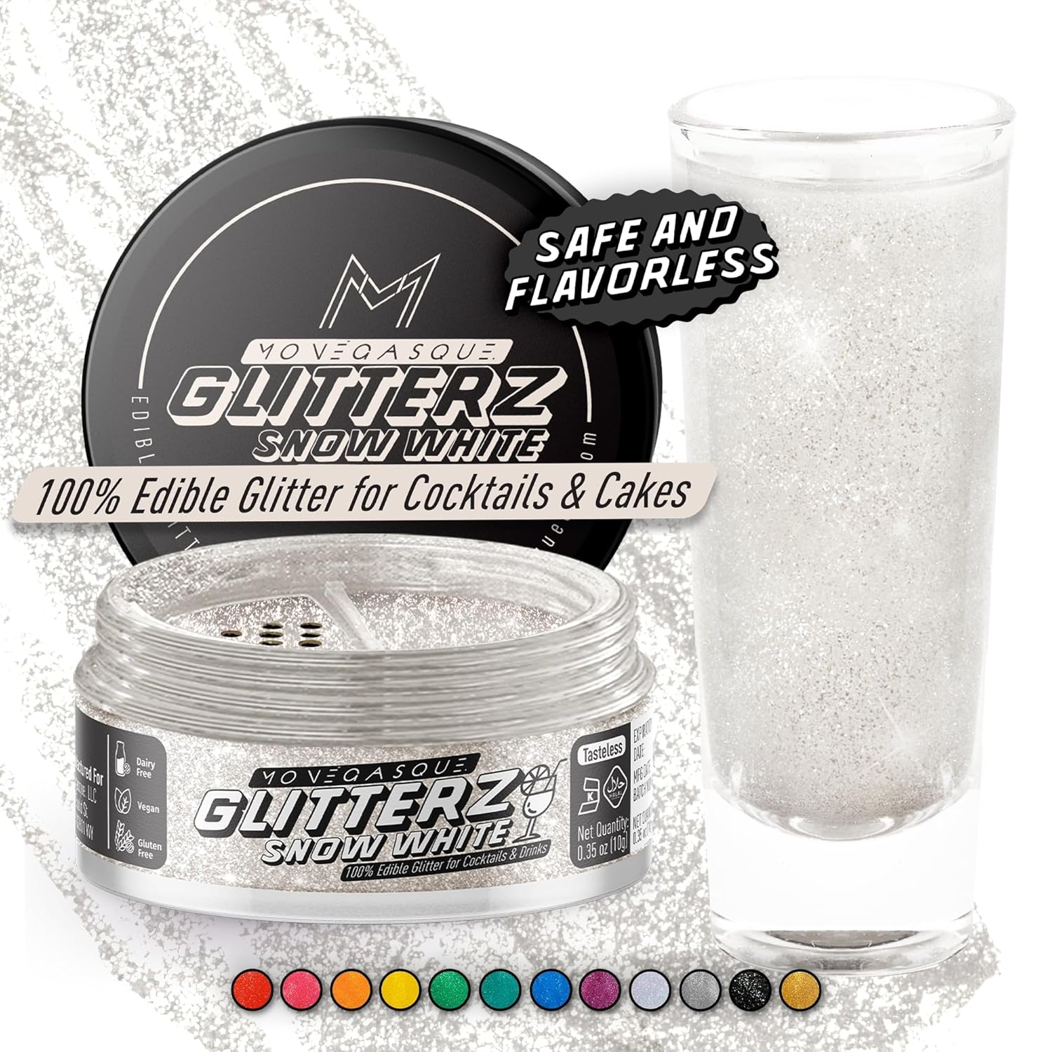MONÉGASQUE Snow White Edible Glitter for Drinks 10g – White Edible Glitter for Cakes & Halloween Cocktails - Champagne & Cocktail Drink Shimmer - Cake Decorations Spray & Food Decorating Sprinkles