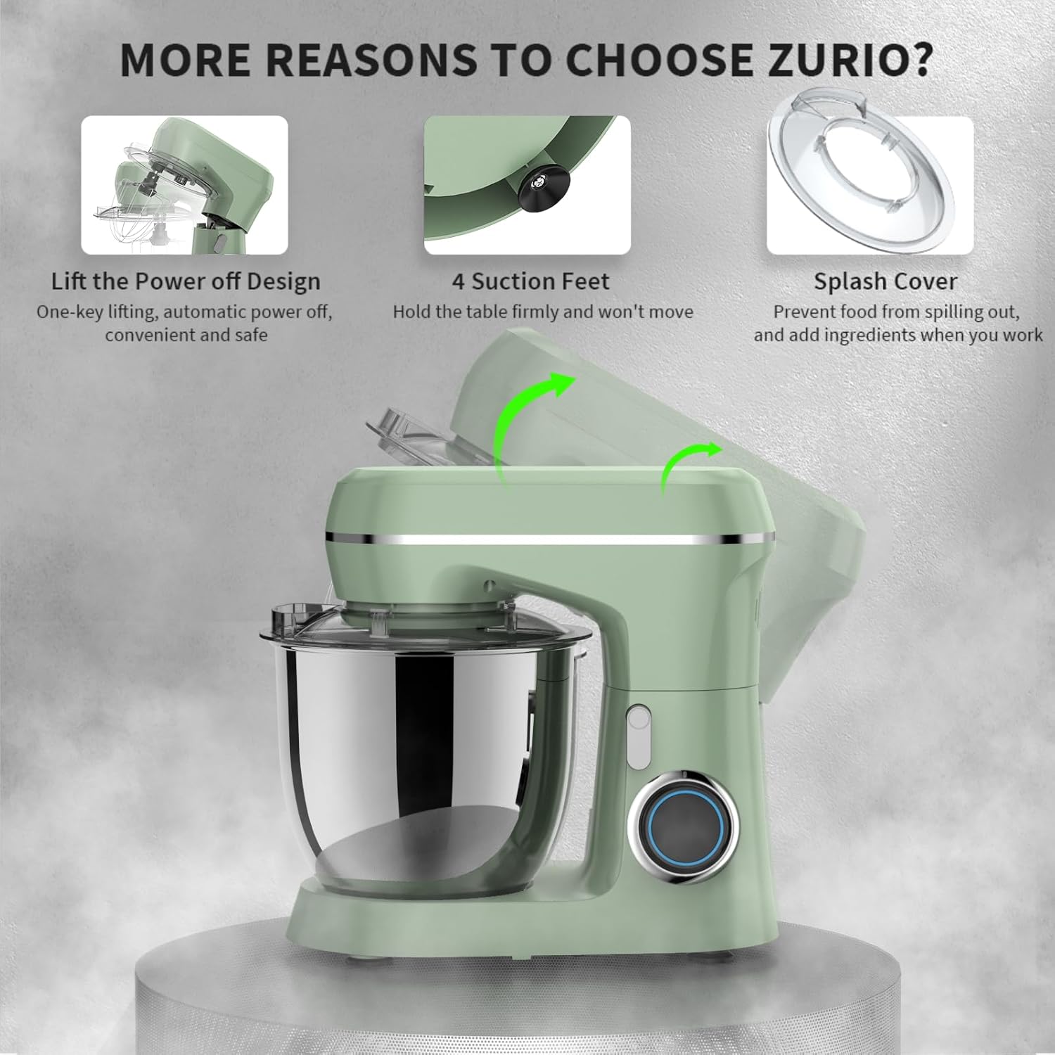 Stand Mixer, 5.5 Quart, 10 Speed Tilt-Head Food Mixer, Kitchen Electric Mixer with SS Bowl, Copper Motor, Beater, Dough Hook, SS Egg Whisk (450W Green)