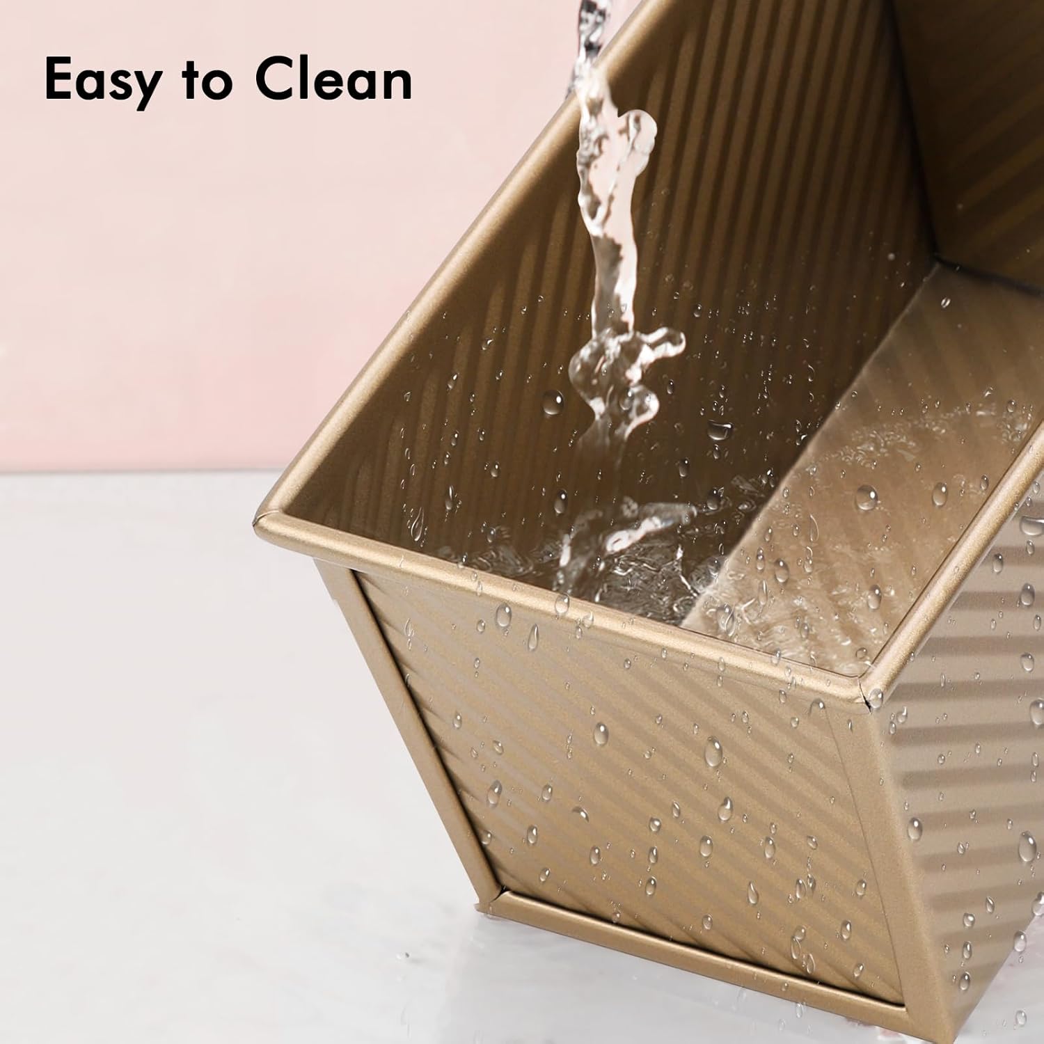 - Non-Stick Coating, Easy to Clean --- The pretty slick nonstick coating on loaf pan which is easy to clean, so both bread dough and baked bread can be demold from it easily. Also, it is easy to use, you can easily pop out bread from gold toast pan to keep a good shape.