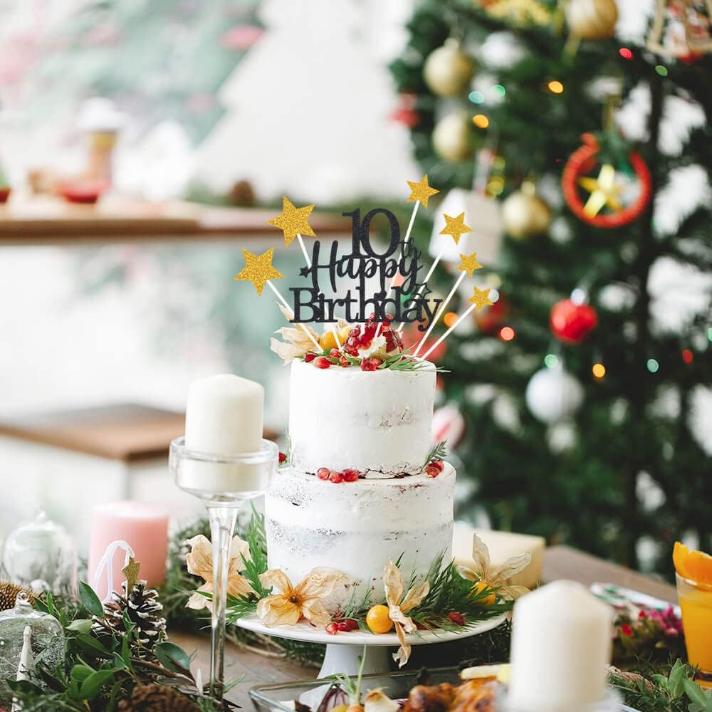 Glittery 10th Happy Birthday Cake Topper with Star,Personalised 10 Birthday Cake Toppers Party Decorations Party Supplies for Boys Girls Black Gold