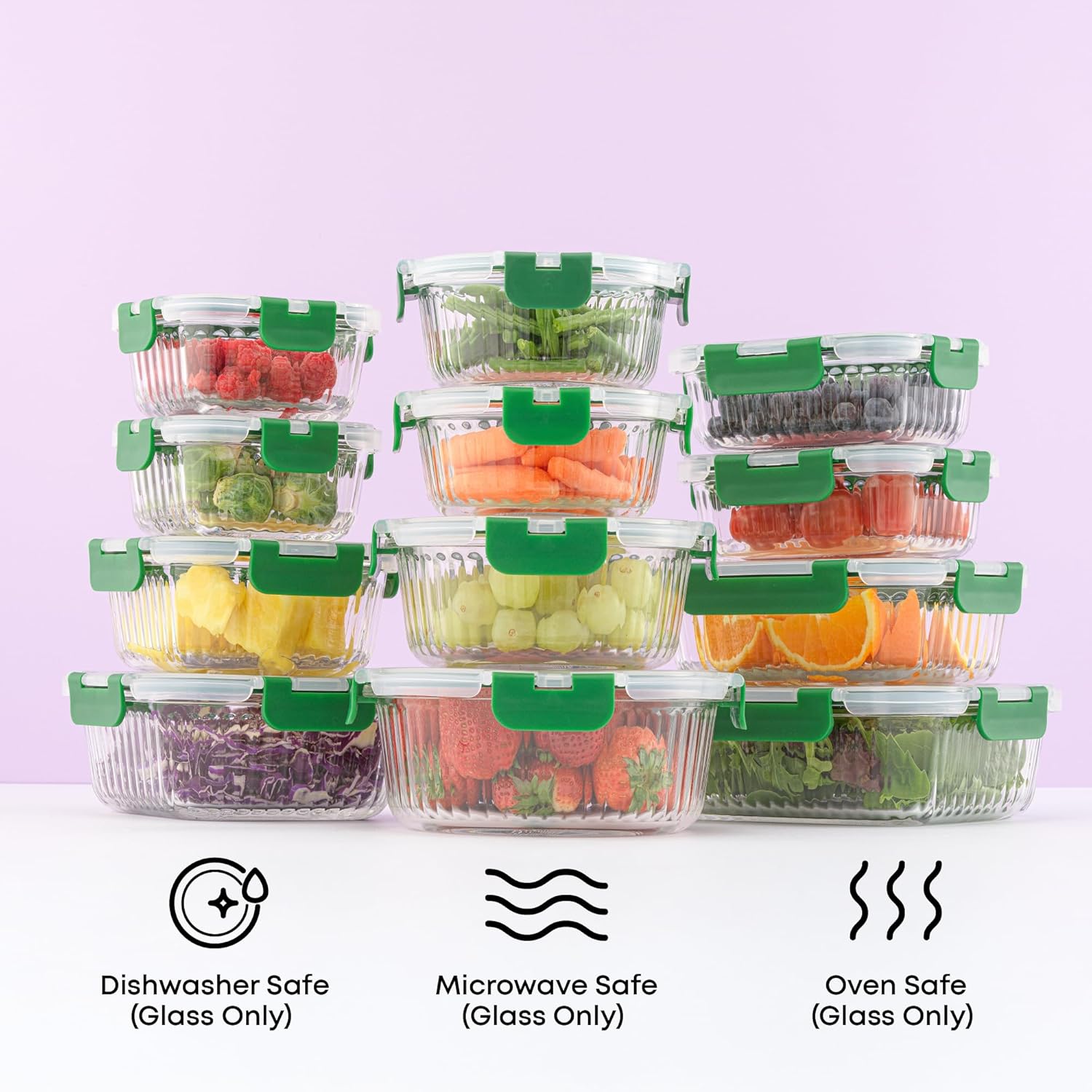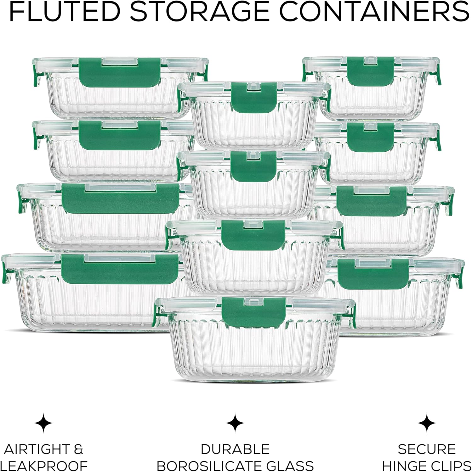 - FLUTED GLASS FOOD STORAGE CONTAINERS FOR EVERYTHING: Prep, stash, stack, store, and more with our charming, fluted glass meal prep containers! BPA-free, they go from freezer to oven without breaking. With a variety of shapes and sizes, these glass containers handle it all.