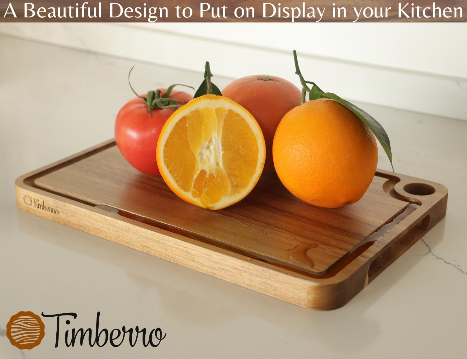 - Natural Beauty: Crafted from eco-friendly and stunning acacia wood, our artisan cutting board showcases unique grain patterns, ranging from soft caramel tones to rich chocolate hues. No two boards are the same, giving your kitchen a one-of-a-kind rustic charm. It’s as stylish as it is practical.