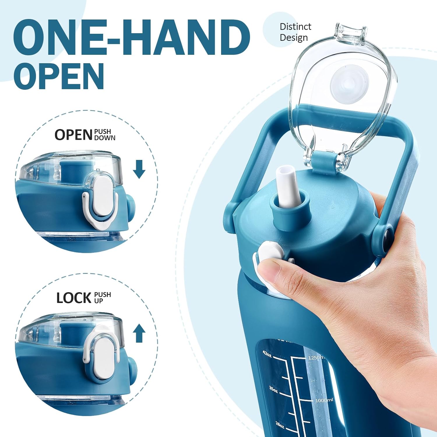 - ❤High-Quality Borosilicate Glass Bottle- This large motivationla water bottle is made of odorless, quality, borosilicate glass. Straw and lid are made of food-grade PP, BPA-free and eco-friendly.