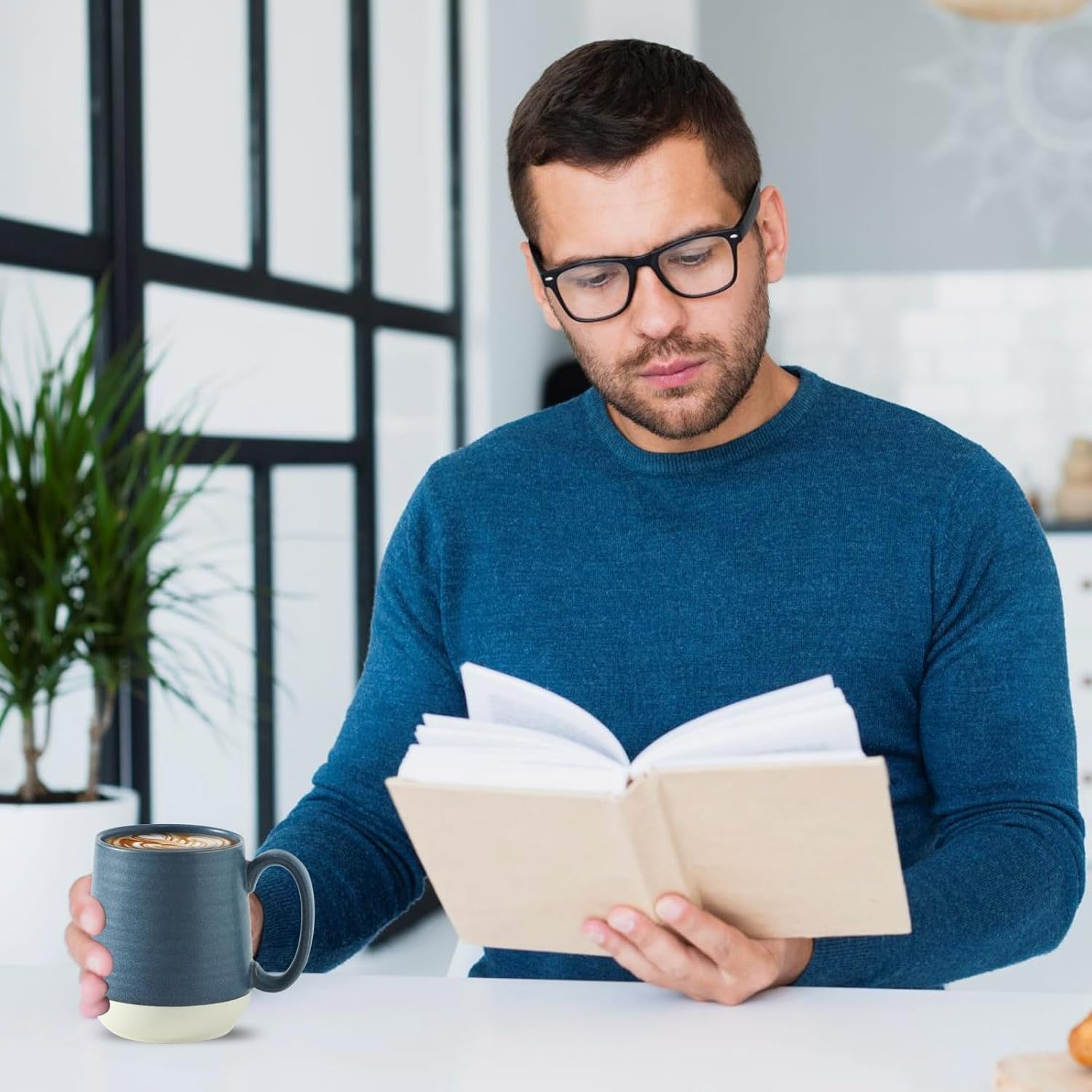 - STYLISH COLORBLOCKING DESIGN: Elevate your coffee experience with the Hasense Coffee Cups Set. Each mug features a stylish colorblocking design in deep blue, adding a touch of modern sophistication to your daily caffeine rituals