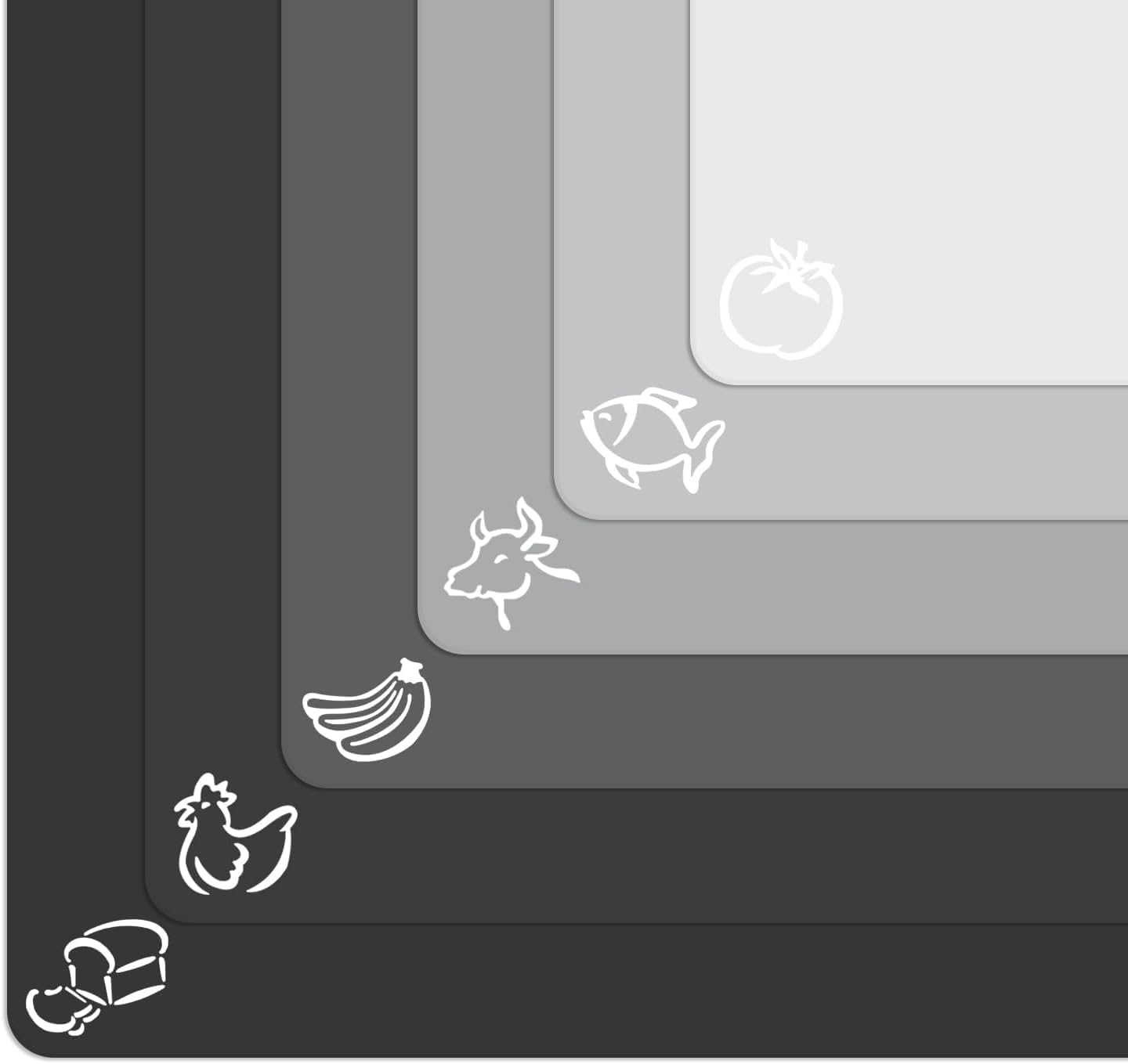 Extra Thick Flexible Plastic Cutting Board Mats with Food Icons & EZ-Grip Waffle Back, (Set of 6) Dishwasher Safe