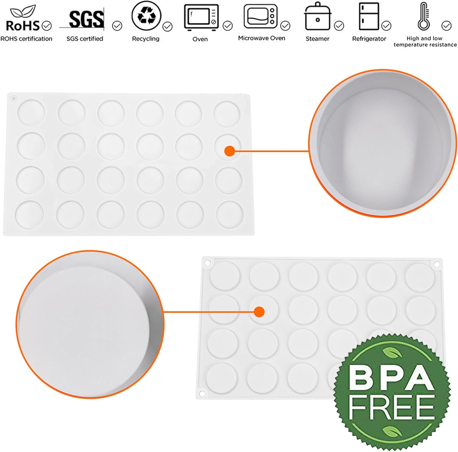 OCPO KITCHEN 3D Round Cylinder Silicone Mold for Baking Mousse Cake, Candy, Pastry, Chocolate, Cupcake, Cookie, Cake Decoration Mold, Round Shape (24-Cavity)