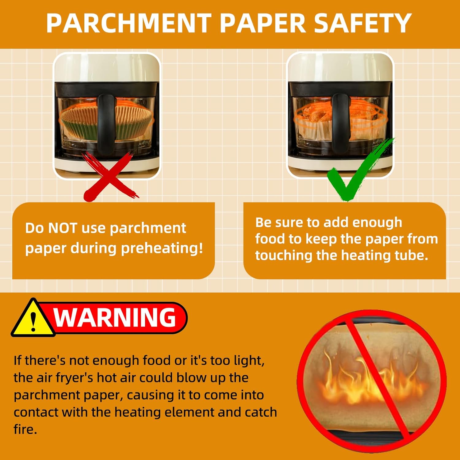 - Food Grade Airfryer Accessories - HONYAO air fryer paper liners are made of food grade parchment paper and silicone oil 100% healthy and heat-resistant, BPA free, waterproof, oil-proof, and non-stick. Our Air fryer paper liners can withstand temperatures up to 428 °F (220 °C) while retaining the flavor of the food.