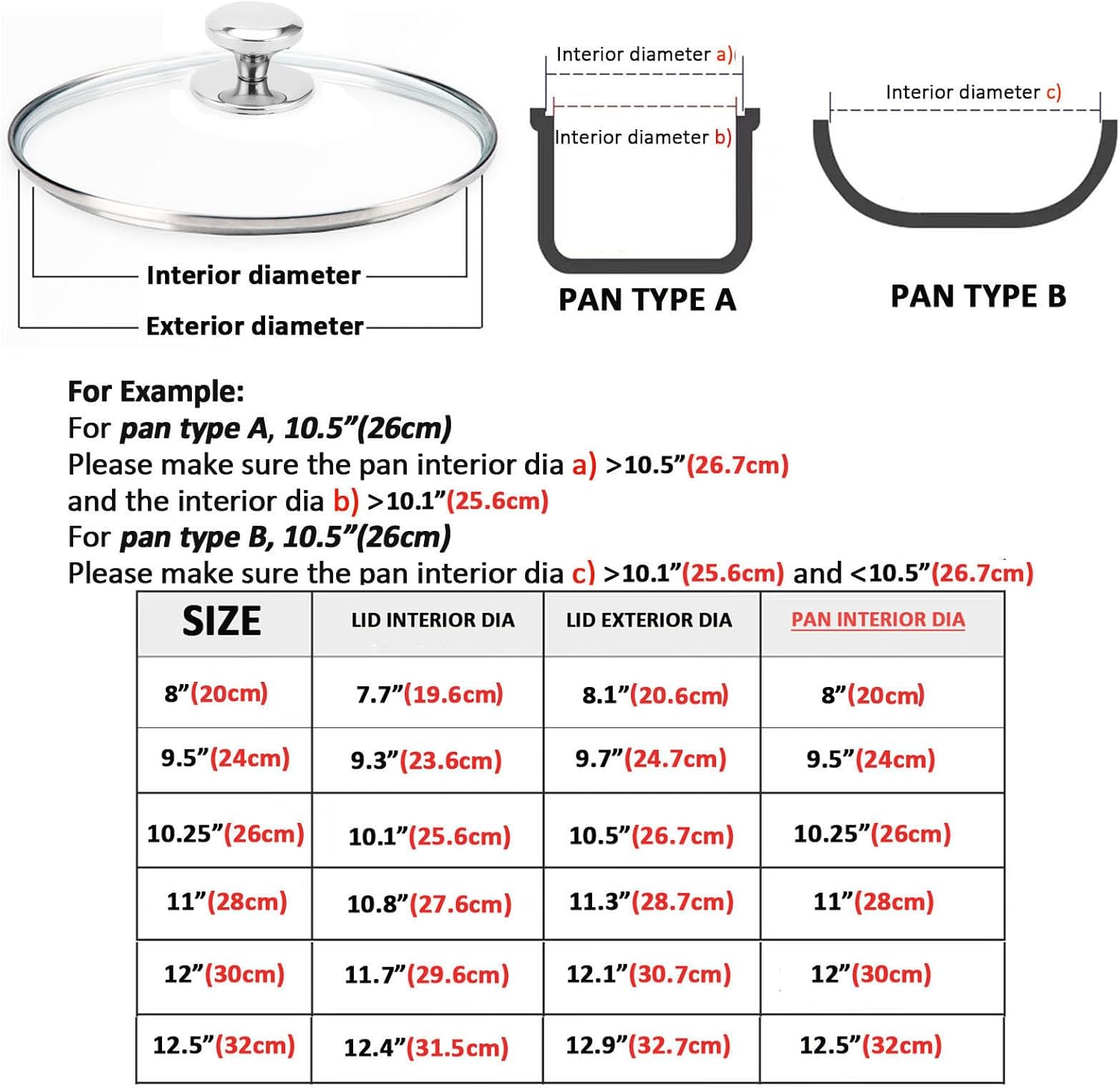 - Style : Glass Lid for Frying Pan, Saute Pan, Tempered Glass Cover with Heat Resistant Silicone Rim, Handle