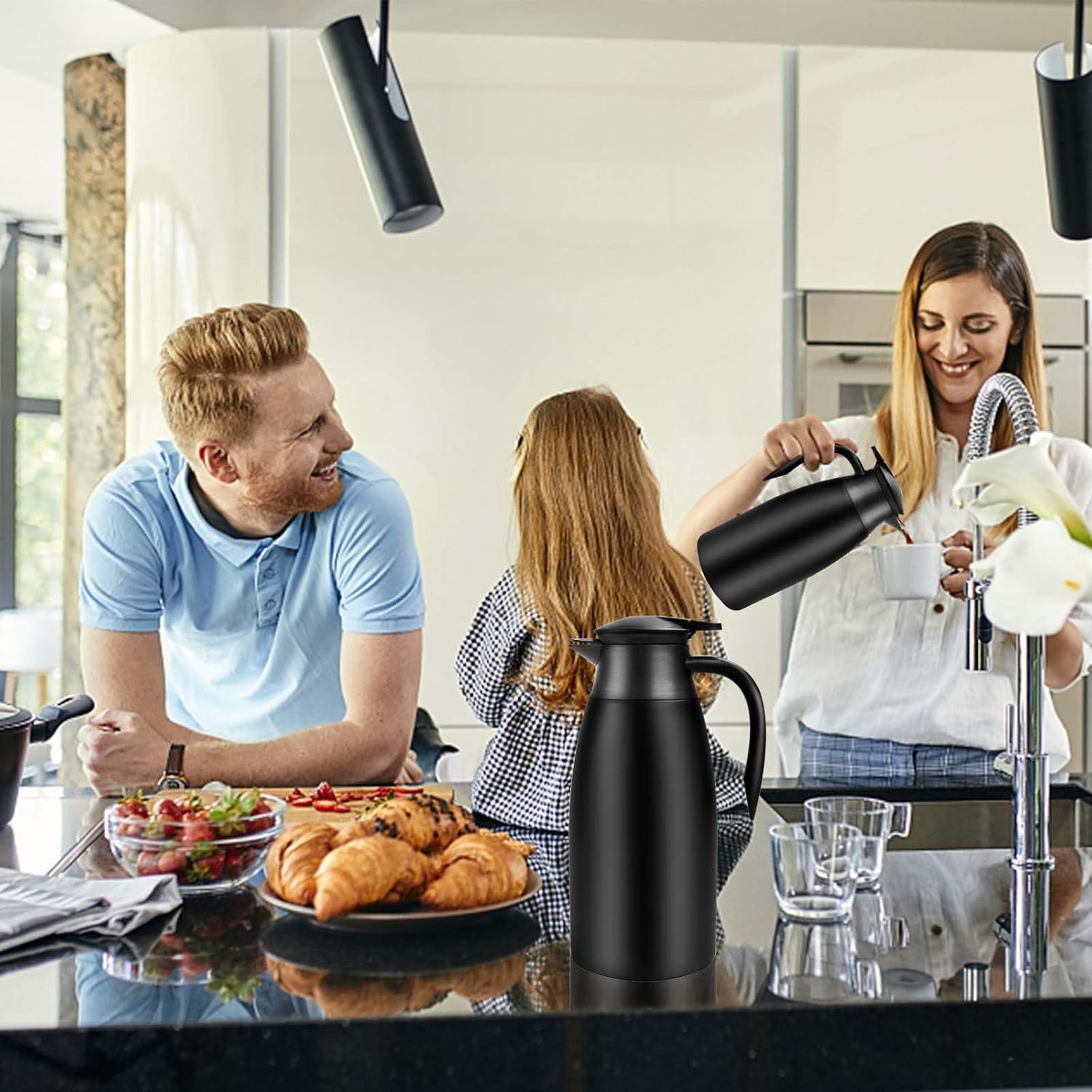 2pcs 70oz Coffee Carafe Airpot Insulated Coffee Urn Stainless Steel Vacuum Thermal Pot Dispenser for Coffee, Hot Water, Tea, Hot Beverage - Keep 12 Hours Hot, 24 Hours Cold (Black)