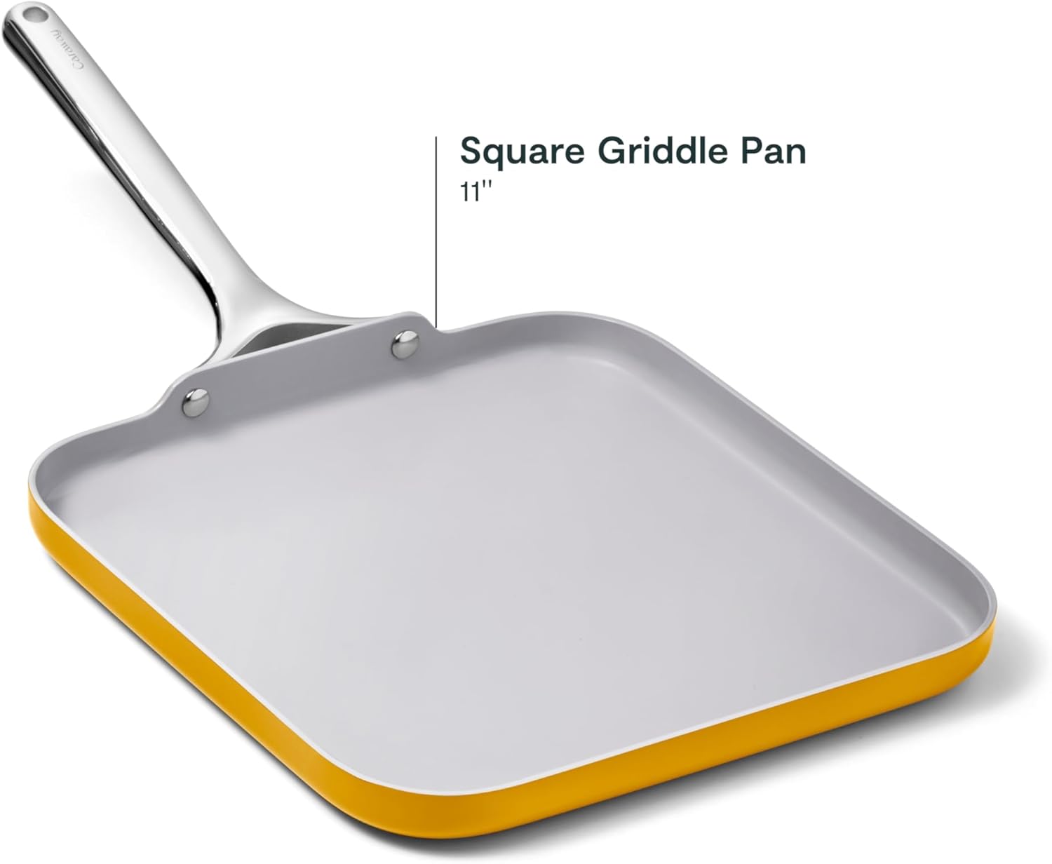 Caraway Square Griddle Pan - 11” Square Pan - Non-Stick Ceramic Coated - Non Toxic, PTFE & PFOA Free - Oven Safe & Compatible with All Stovetops - Marigold