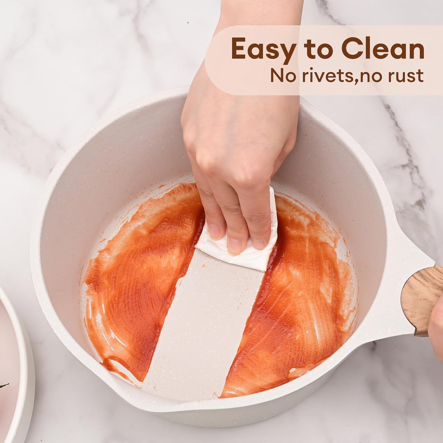 - Super Easy To Clean : Our milk pan is non-stick and has a one-piece molded body. It effectively prevents food from sticking and is very easy to clean. It is easy to wash with just a sponge and soapy water