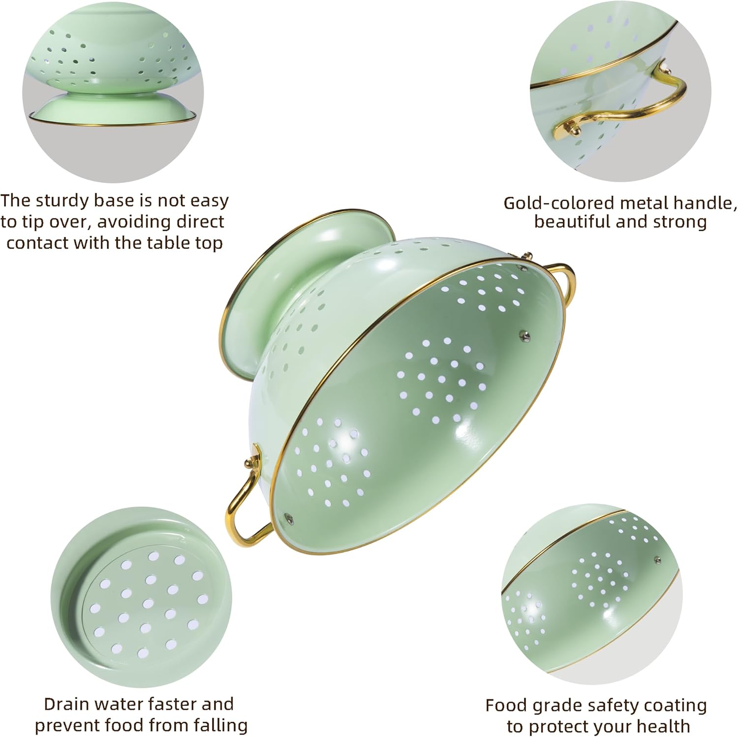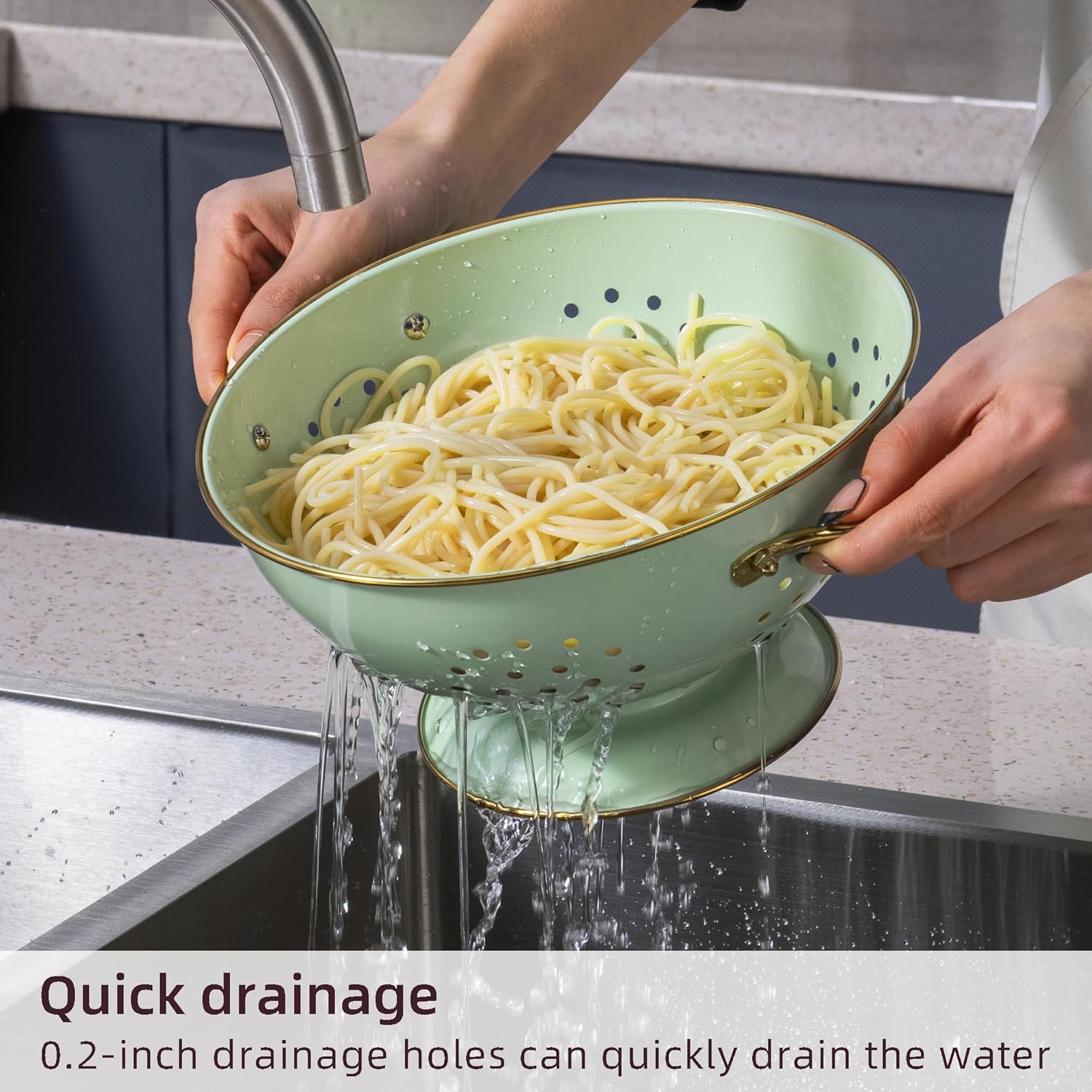 - Metal Colander SetStrainer Basket with Handles Solid Base Powder Coated Kitchen Essential Strainer perfect for Spaghetti, Pasta, Berry, Vegetable, Fruit,