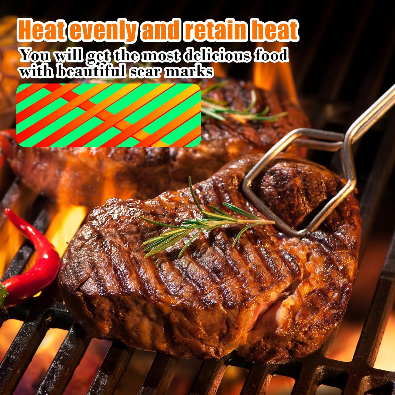- 🔥【Dimensions & Package】- 17.5 x 11.9 inch for each grate/griddle. Package included 1 x cast iron grate and 1 x cast iron griddle. About the grate: Cast iron rod bars are more evenly heated, corrosion-resistant, durable, not easy to rust and easy to clean. About the griddle: Made of durable cast iron to ensure long-lasting use, safe and healthy, non-toxic, heat evenly, cooking better, leave professional and beautiful sear marks on the food