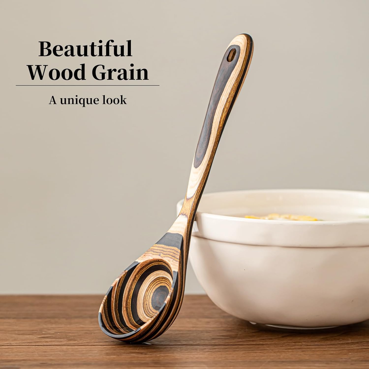 Gudamaye Pakkawood Deep Soup Ladles, 10.6 inch Big Wooden Ladle for Cooking, Wooden Kitchen Utensils Set