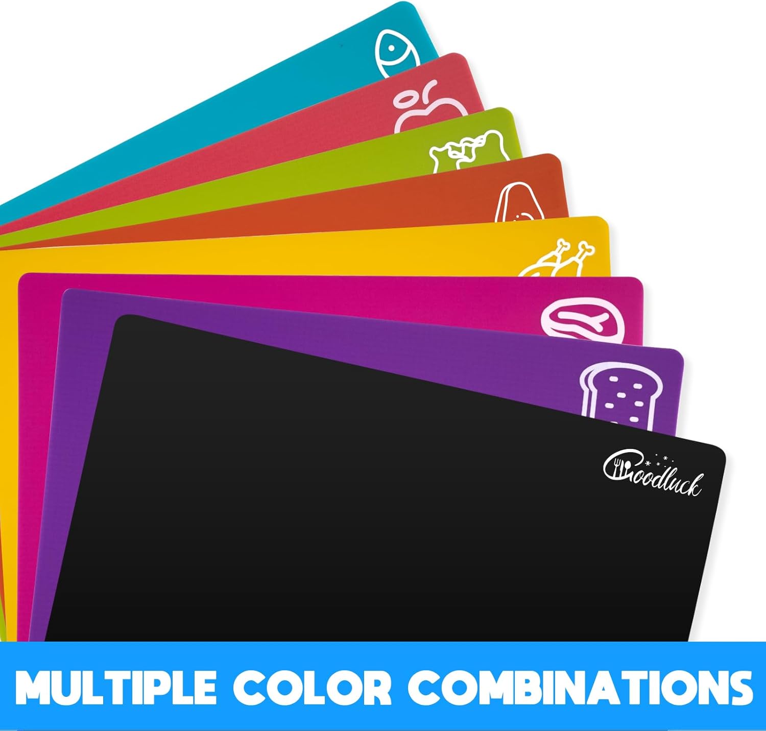 - Large Enough Size - The flexible cutting mats have more color options to choose and dimensions are 14.65*11.02 inches, which makes enough space for food. The lightweight design is great for college apartments, small kitchens, RVs, or camping.