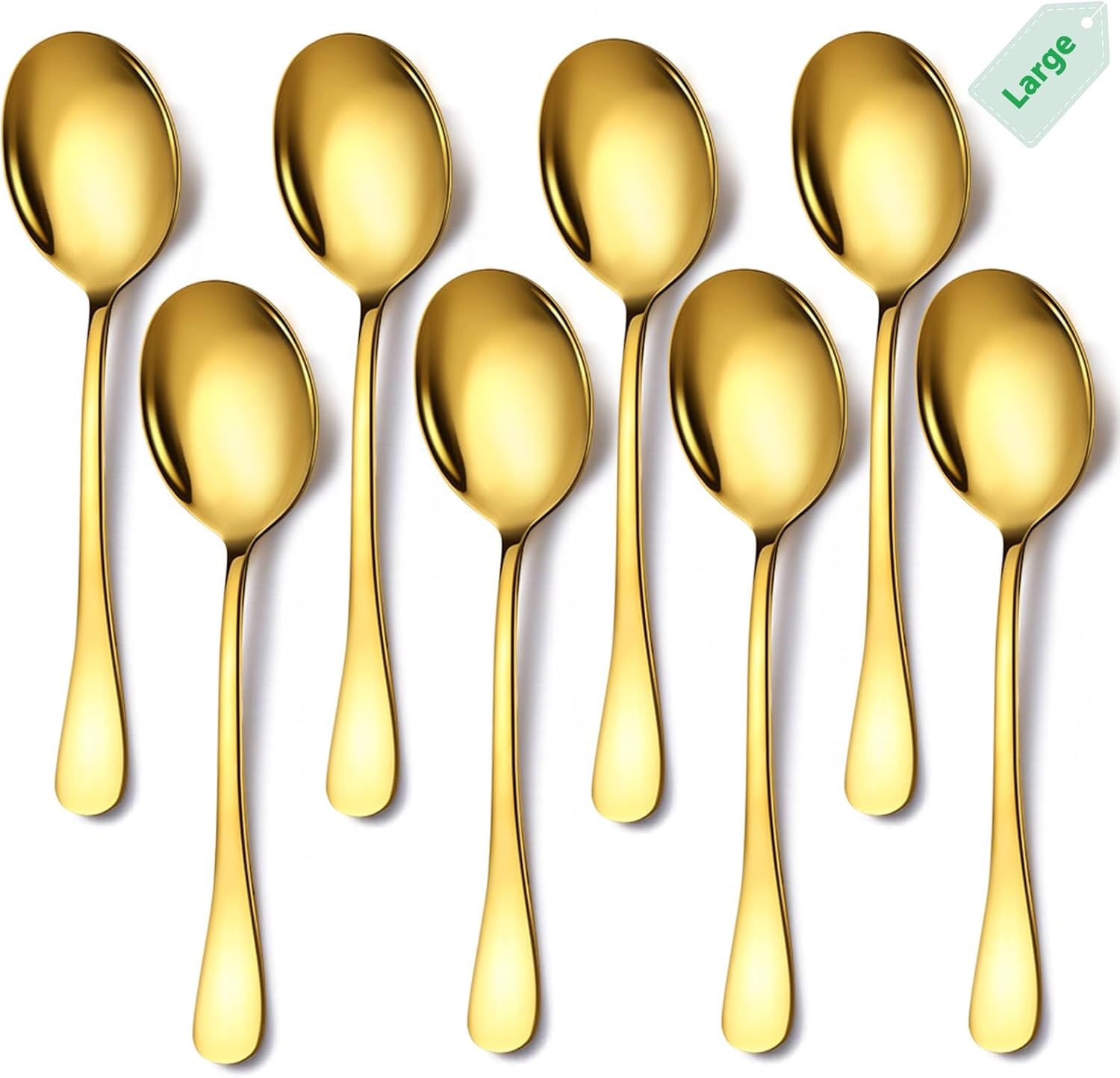 Gold Stainless Steel Serving Spoons Set - 8 Large Spoons, 10-Inch, Dishwasher Safe