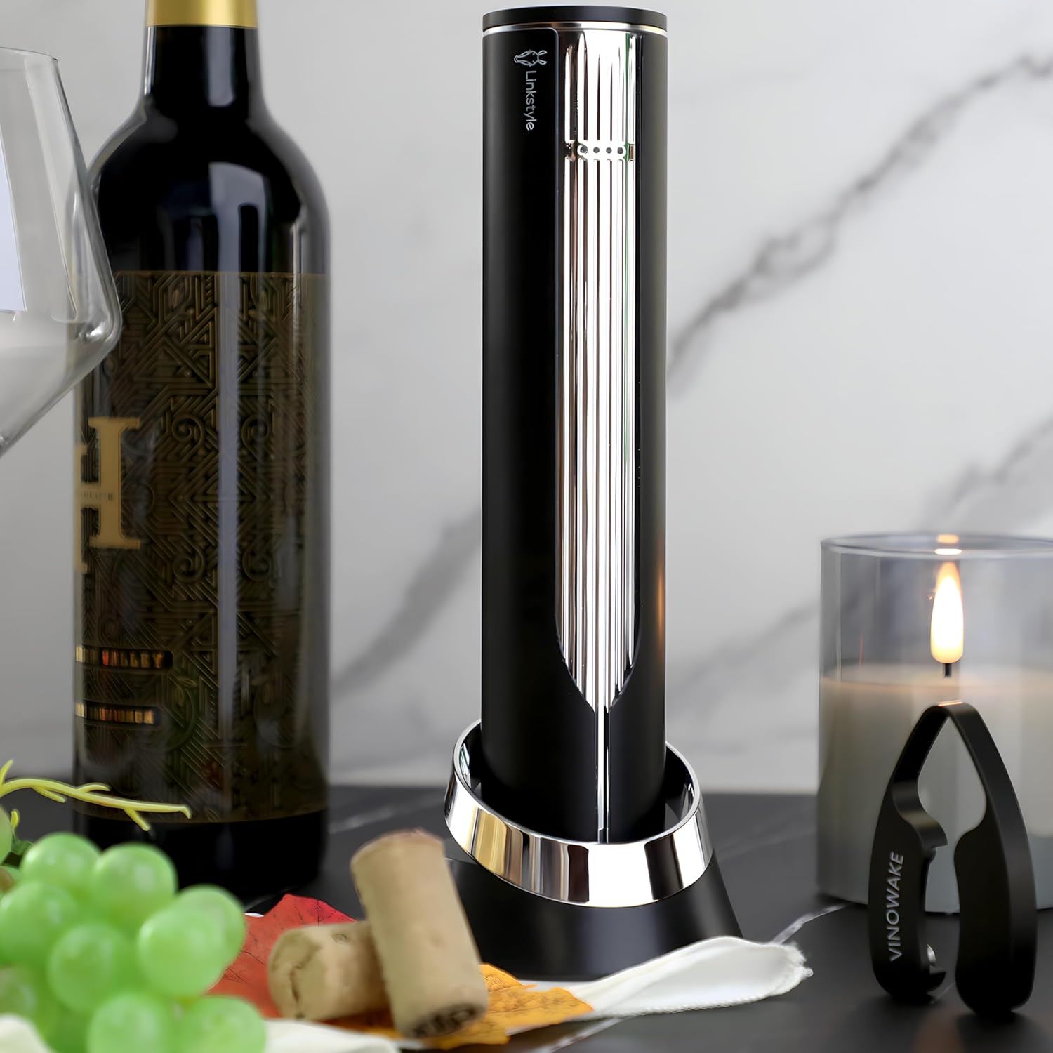 VINOWAKE Openero Electric Wine Opener By LINKSTYLE — Rechargeable Battery with Charging Base, Precision Steel Foil Cutter, Luxurious Matte Finish