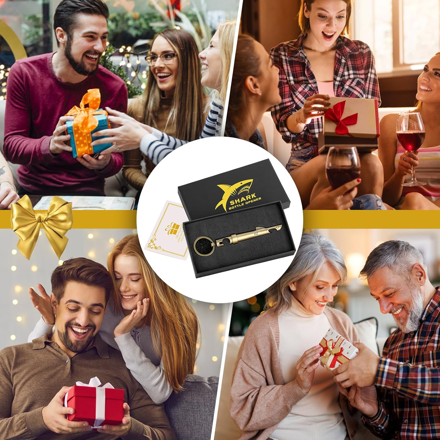 - SHARK-SHAPED DESIGN: Unique novelty shark bottle opener keychain for wine and beer bottles.