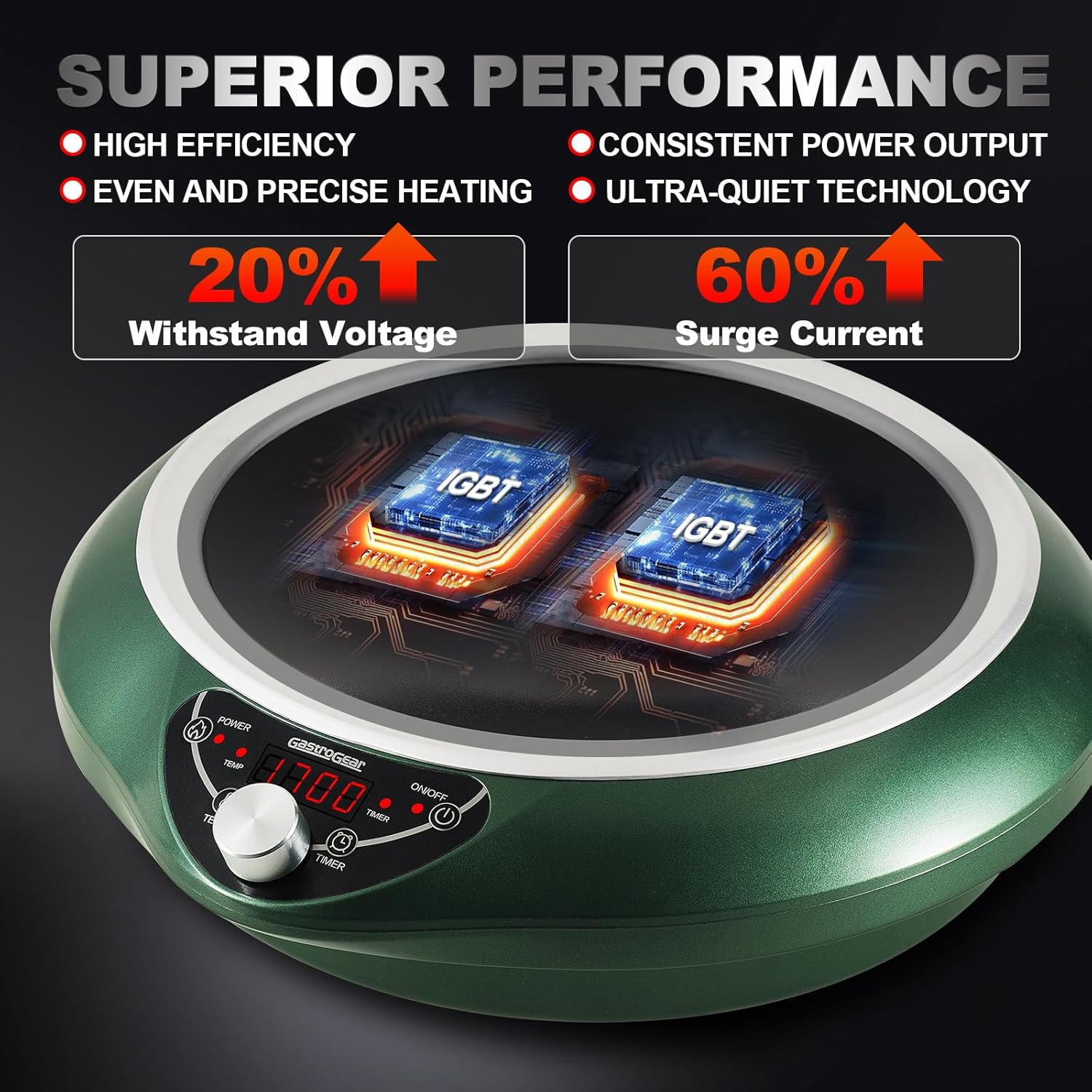 - ⏩Even & Faster Heating: Pots sink into the concave groove for stable placement and uniform heat distribution.Covers more surface and heats faster , with 4.6ft power cable and U.S 3 pin plug, Just plug and play