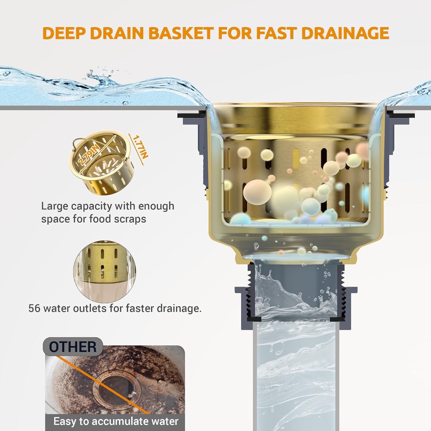 - DURABLE STAINLESS STEEL: The dark gold kitchen sink drain is made of premium 304 stainless steel for durability and resistant to rust and corrosion to provide reliable filtration for years to come (NOTE: Color may vary slightly due to monitor settings.)